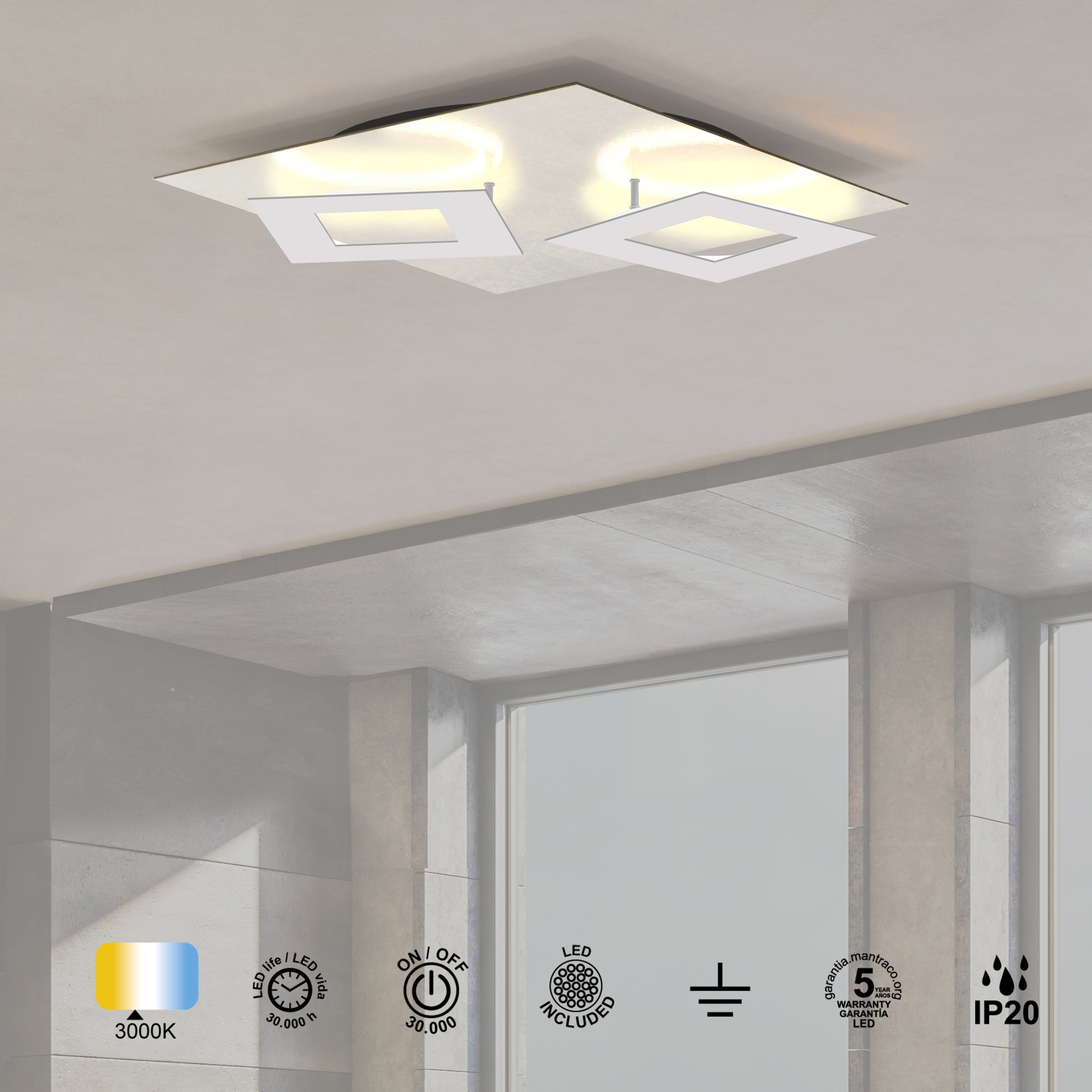 Dalia * Plafon Cuadrado 24W+24W - Blanco + Blanco