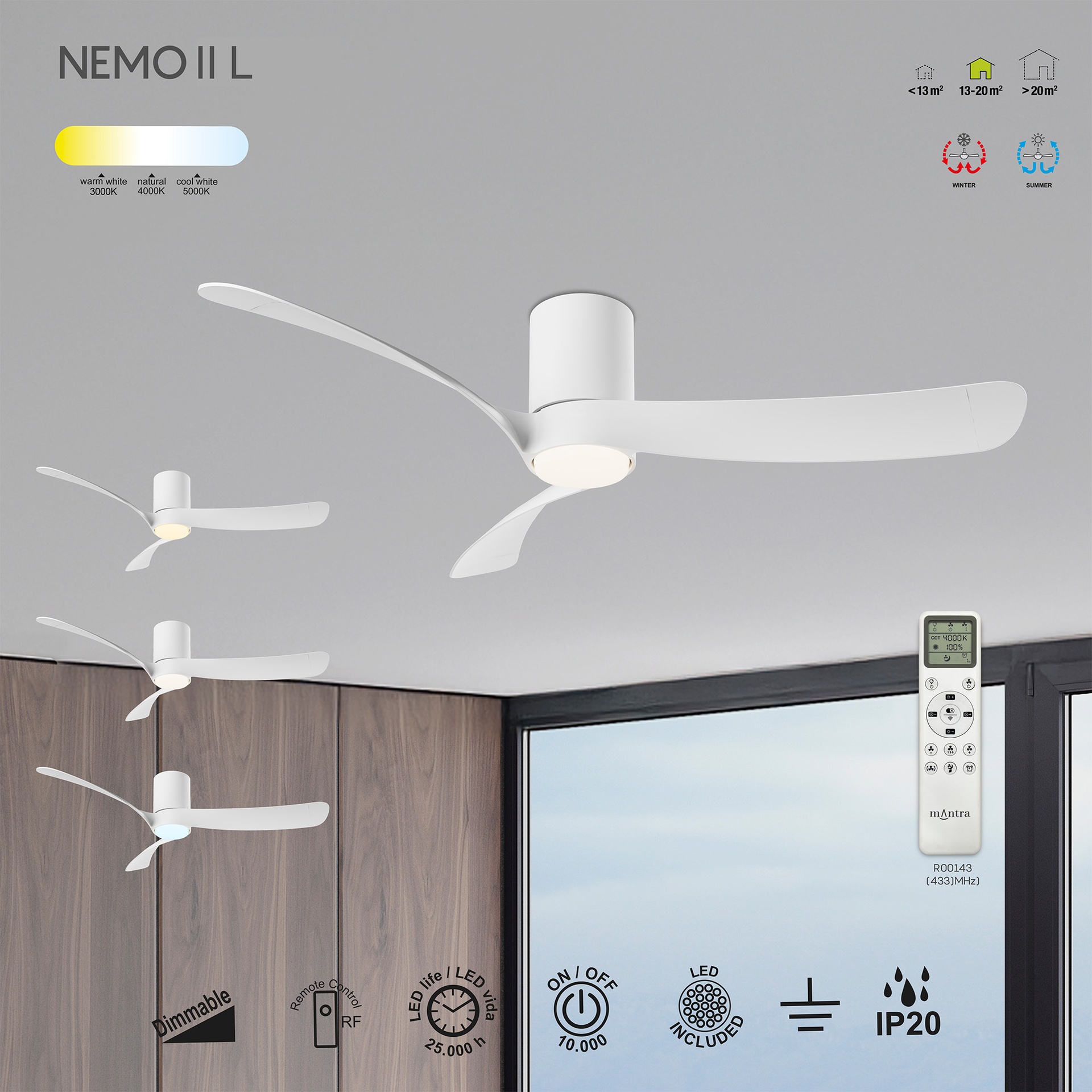 NEMO L * PLAFON / VENTILADOR - BLANCO