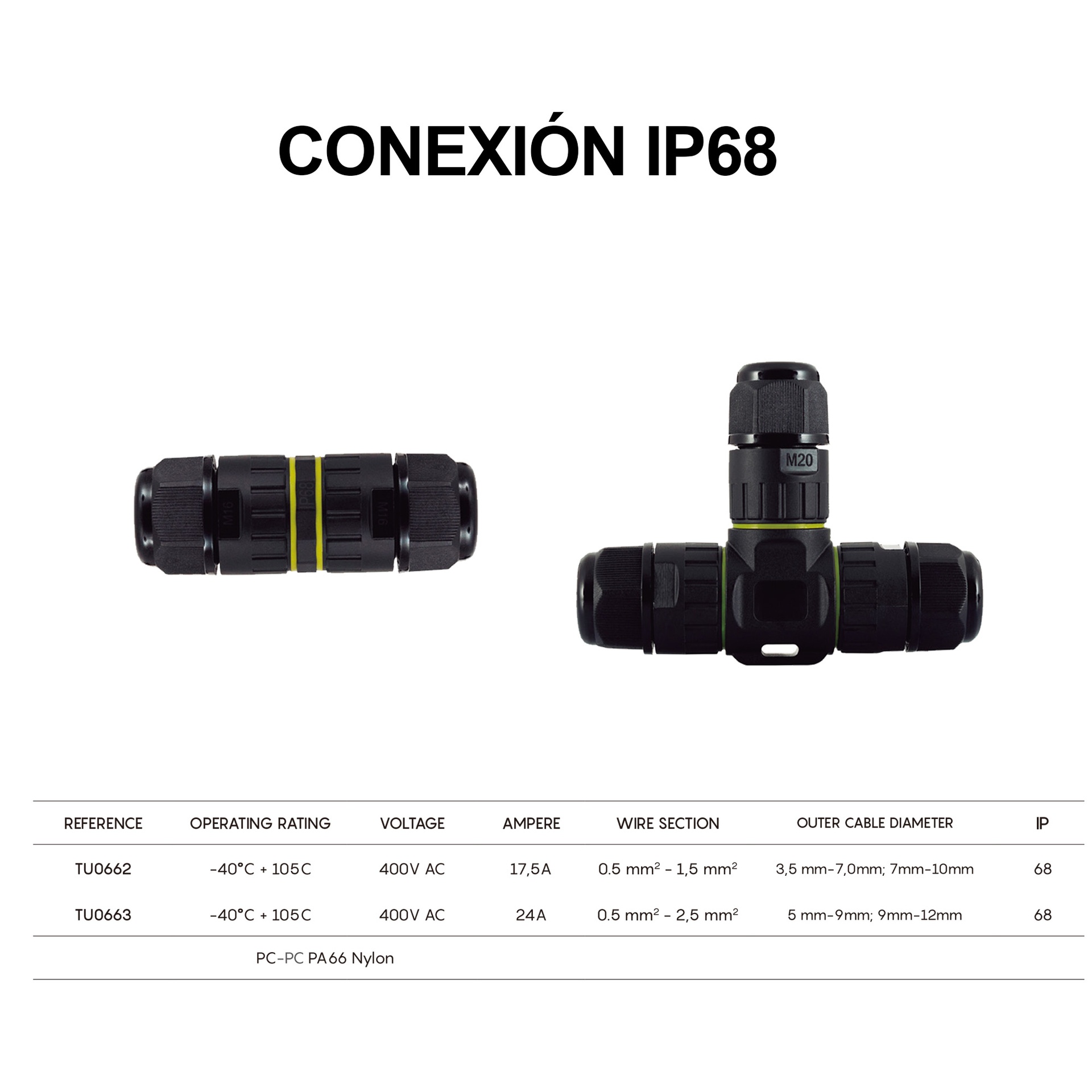 CONNEXION EN T À 3 PÔLES IP68