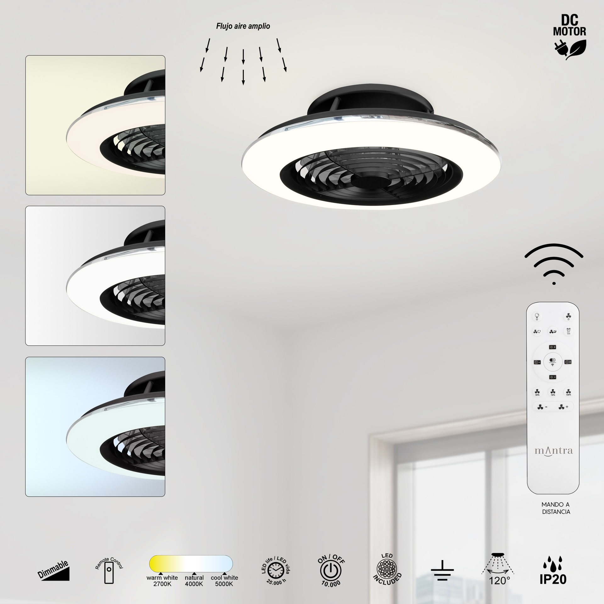 Le design d’ALISIO MINI, créé par MANTRA TEAM, allie créativité et précision en matière de ventilation. Ce ventilateur de plafond offre des solutions adaptables à différents espaces. Les luminaires sont dotés d’un diffuseur en acrylique et disponibles en blanc, noir ou argent, offrant robustesse et style dans toutes les applications. Ils intègrent la technologie LED avec des températures de couleur de 2700K à 5000K, garantissant confort et efficacité énergétique. Grâce à leur indice de protection IP20, ils sont parfaits pour les intérieurs, garantissant durabilité et fiabilité. ALISIO MINI allie esthétique soignée et performances techniques de haut niveau.