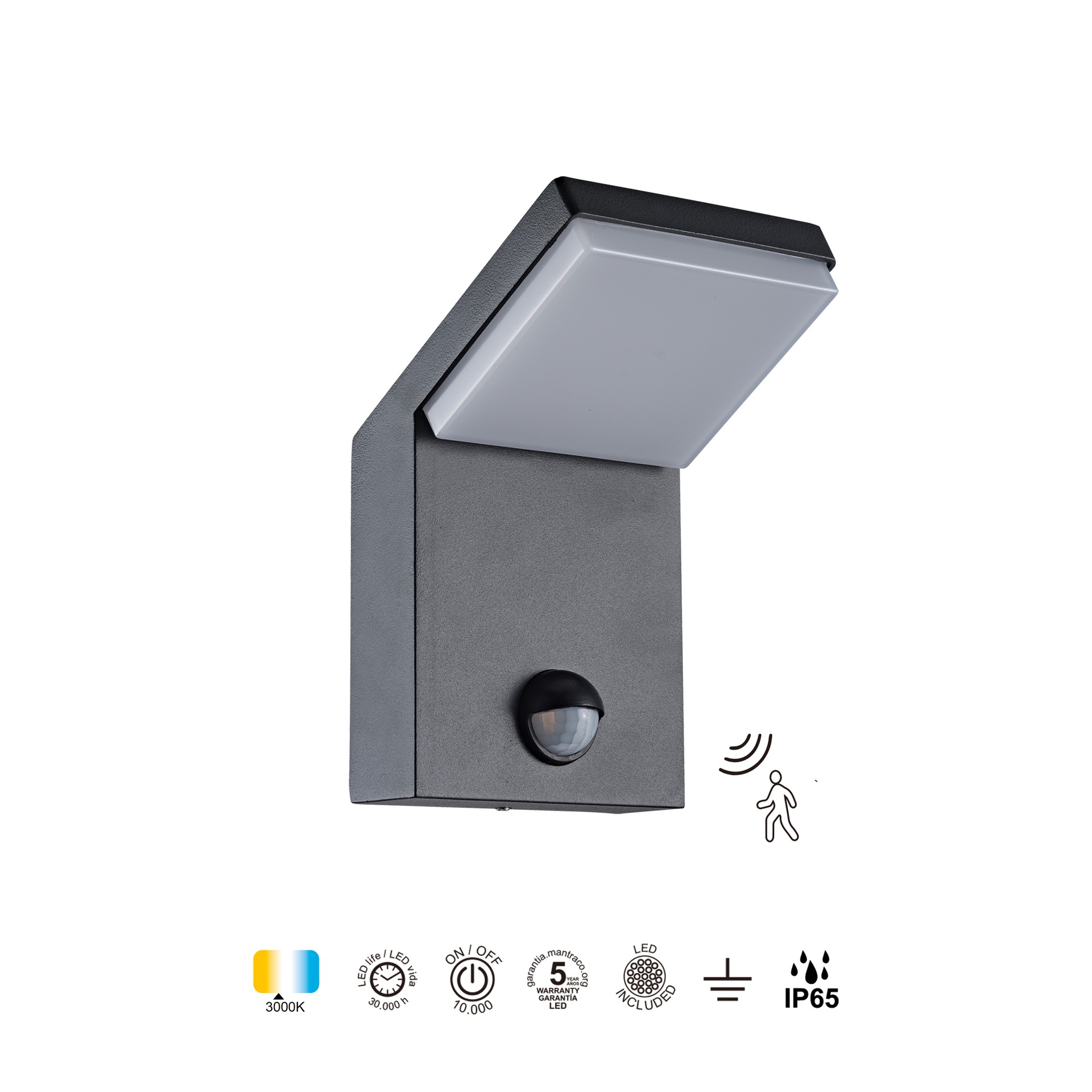 ALPINE * APPLIQUE LED IP65 6W 3000K GRIS FONCE SENSOR