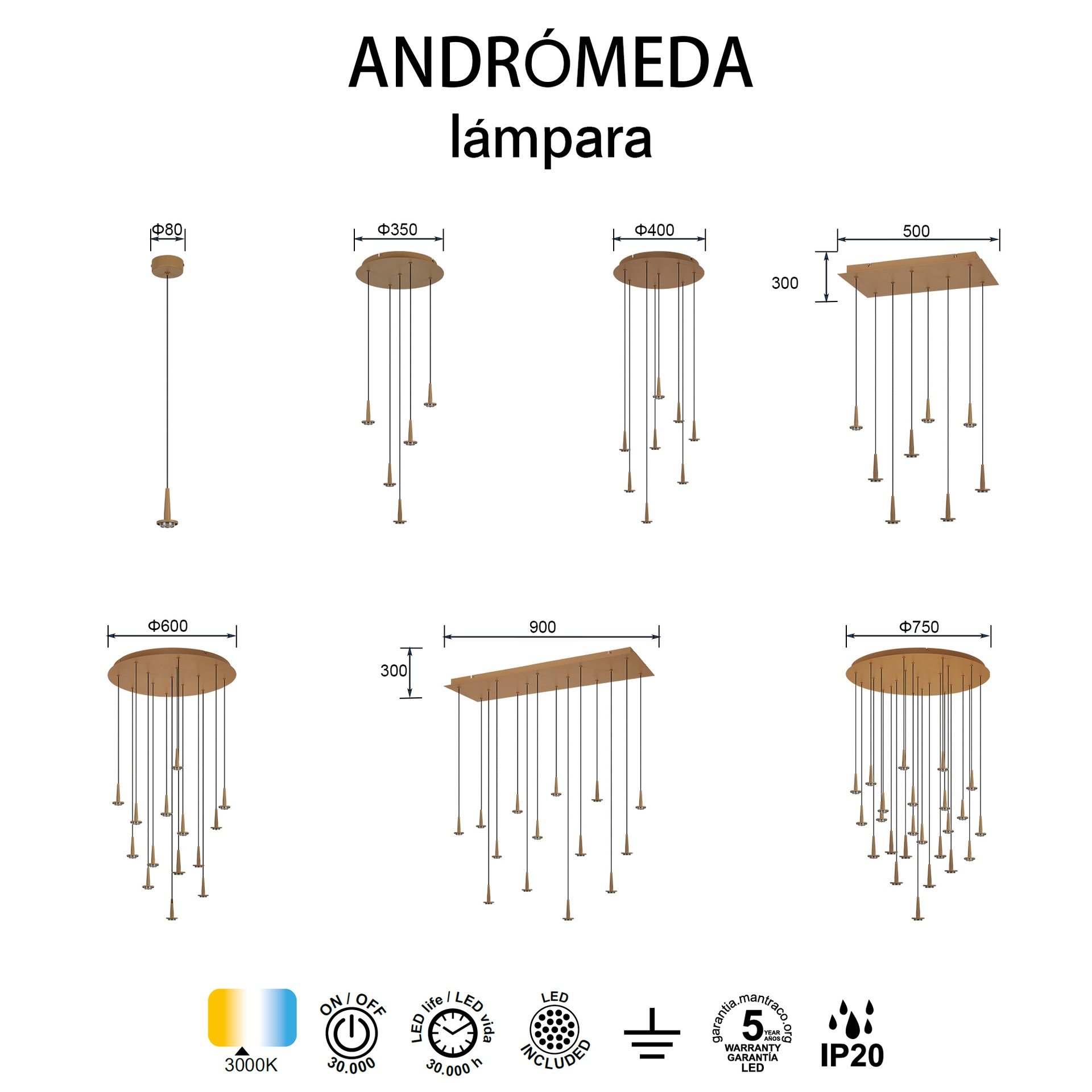 Avec un style défini par l’équipe MANTRA, ANDROMEDA propose une gamme polyvalente pour la décoration intérieure. Elle comprend des plafonniers offrant des solutions adaptables à différents espaces. Fabriqués en verre, en fer et en fer/verre, les luminaires sont disponibles en bronze, cuivre, chrome, or et transparent, offrant robustesse et style à chaque application. Ils intègrent la technologie LED avec des températures de couleur de 3000 K, garantissant confort et efficacité énergétique. Grâce à leur indice de protection IP20, ils sont parfaits pour les intérieurs, garantissant durabilité et fiabilité. ANDROMEDA est synonyme de design soigné et d’efficacité lumineuse pour tous types d’espaces.