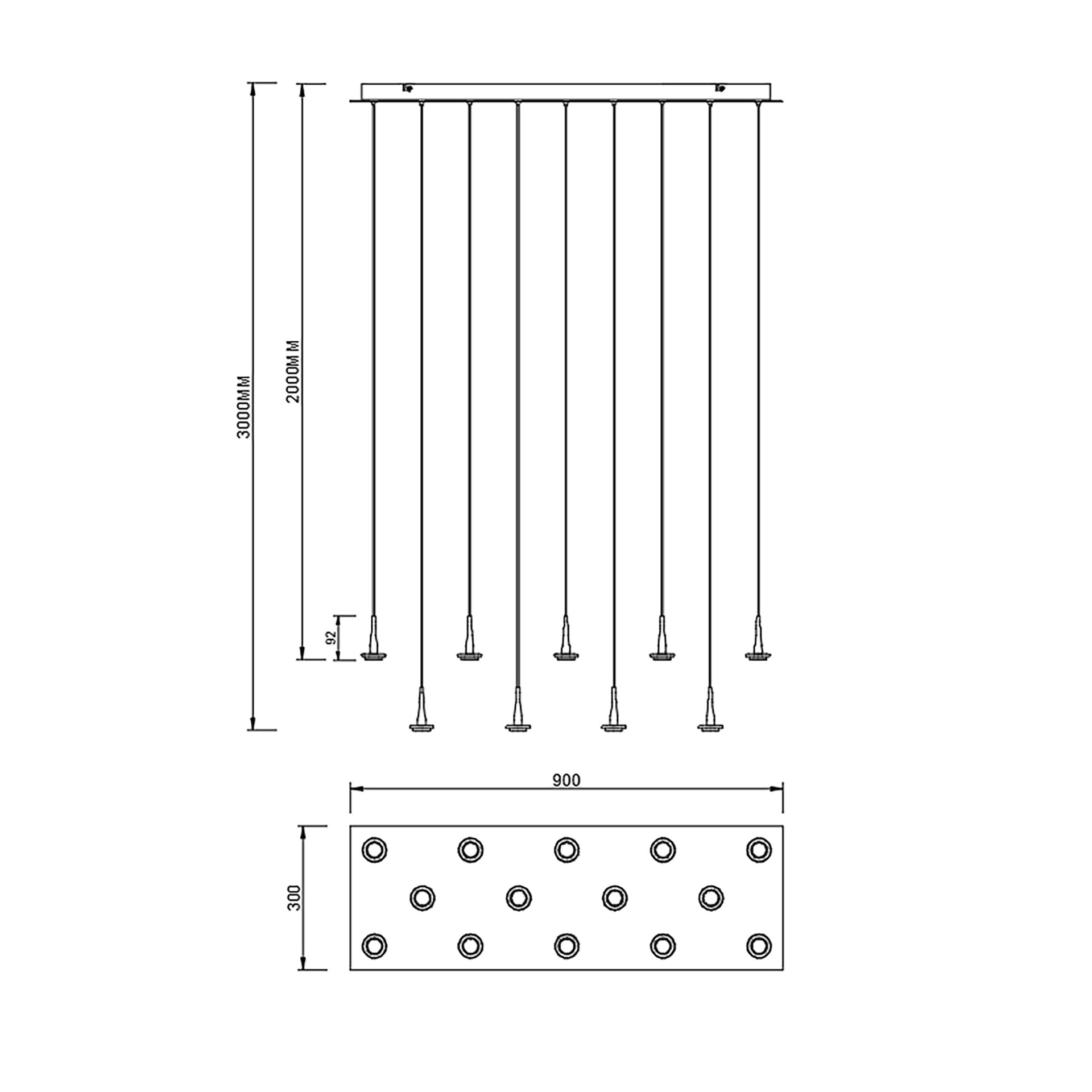ANDROMEDA * Suspension carrée 14xLED 5W 3000K W/T VERRE