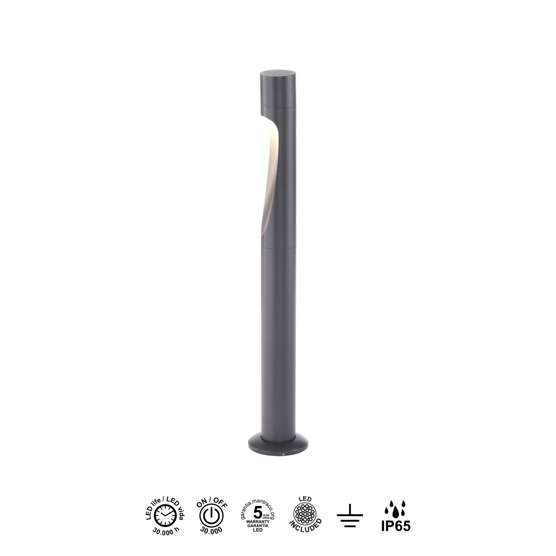 ARAN * BOLLARD 60CM IP65 6W 3000K GRIS FONCE