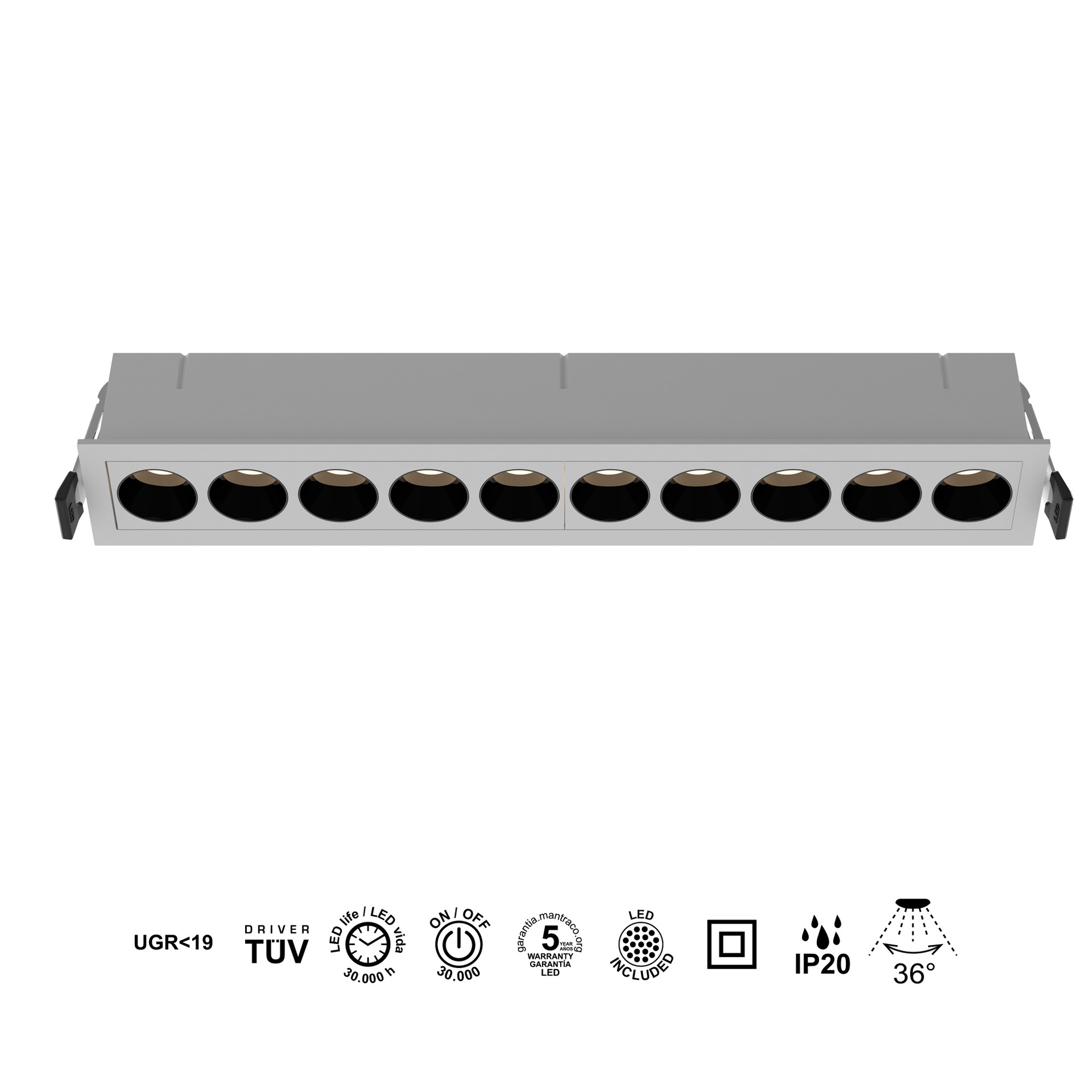 La collection BLAU, conçue par MANTRA TEAM, est une proposition unique au sein de tek, se distinguant par sa personnalité et son caractère distinctif. Composée d’encastrés/downlights, elle offre des solutions adaptables à différents espaces. Fabriqués en aluminium et disponibles en finitions blanche ou noire, ces luminaires allient robustesse et style à toutes les applications. Ils intègrent la technologie LED avec des températures de couleur de 3000 K, garantissant confort et efficacité énergétique. Grâce à leur indice de protection IP20, ils sont parfaits pour les intérieurs, garantissant durabilité et fiabilité. Une gamme conçue pour répondre aussi bien aux environnements décoratifs qu’aux projets d’éclairage exigeants.