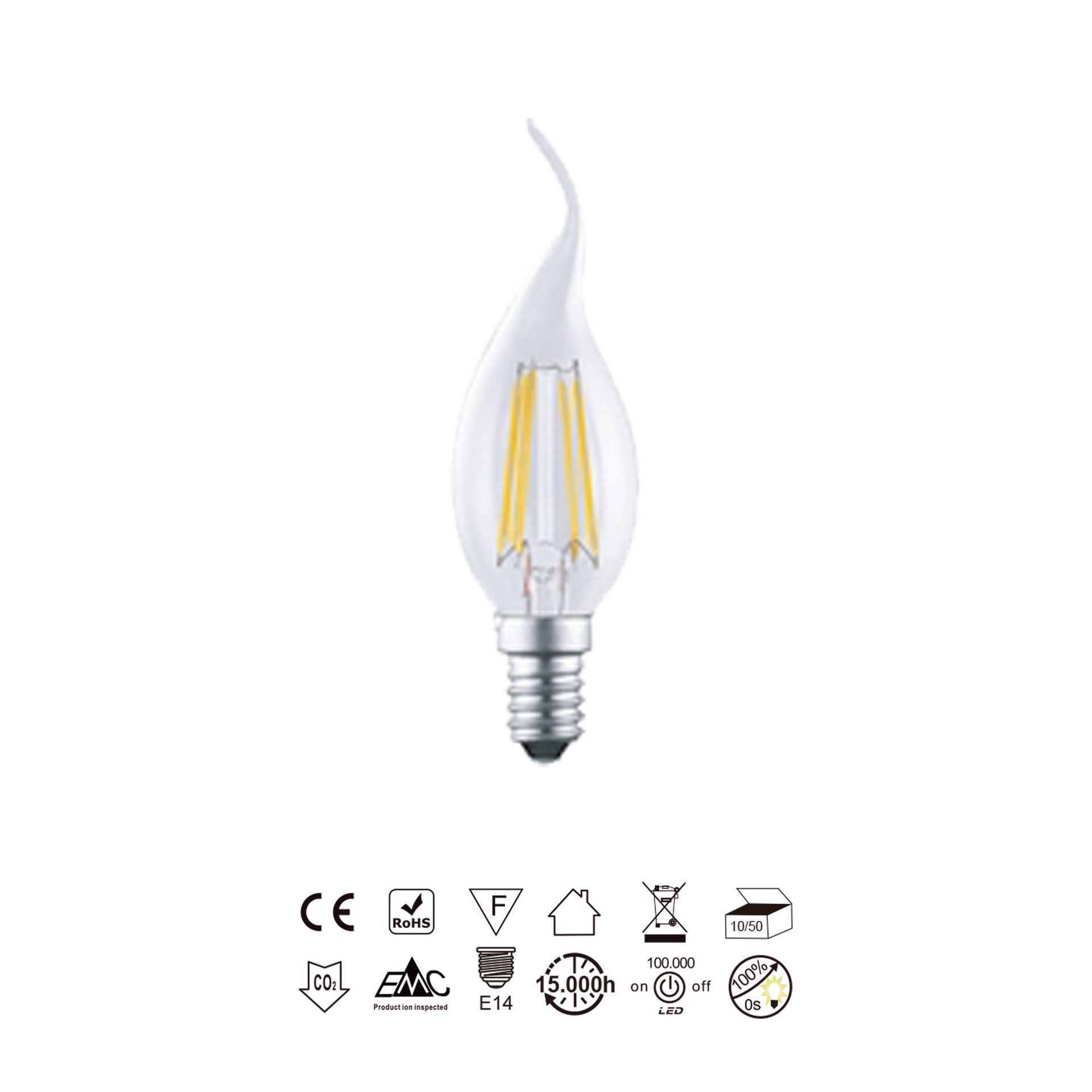 AMPOULE LED - E14 DÉCORATION BOUGIE. FILAMENT - 4W - 470lm 2700K