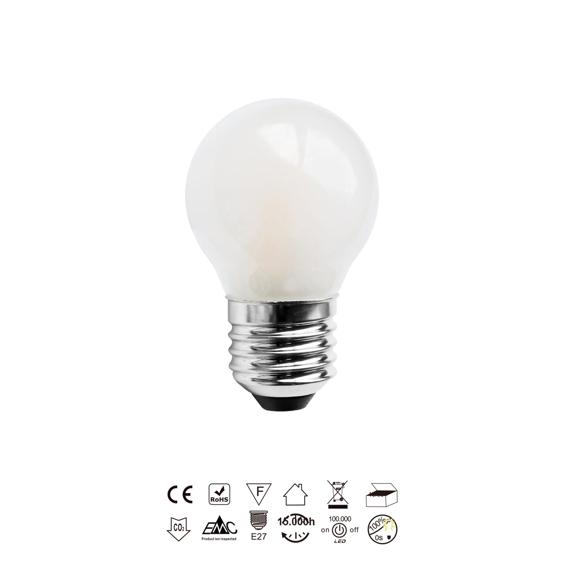 AMPOULE LED * E27 OPALE SPHÉRIQUE – 6,5W - 4000K - 800 Lm - 360º