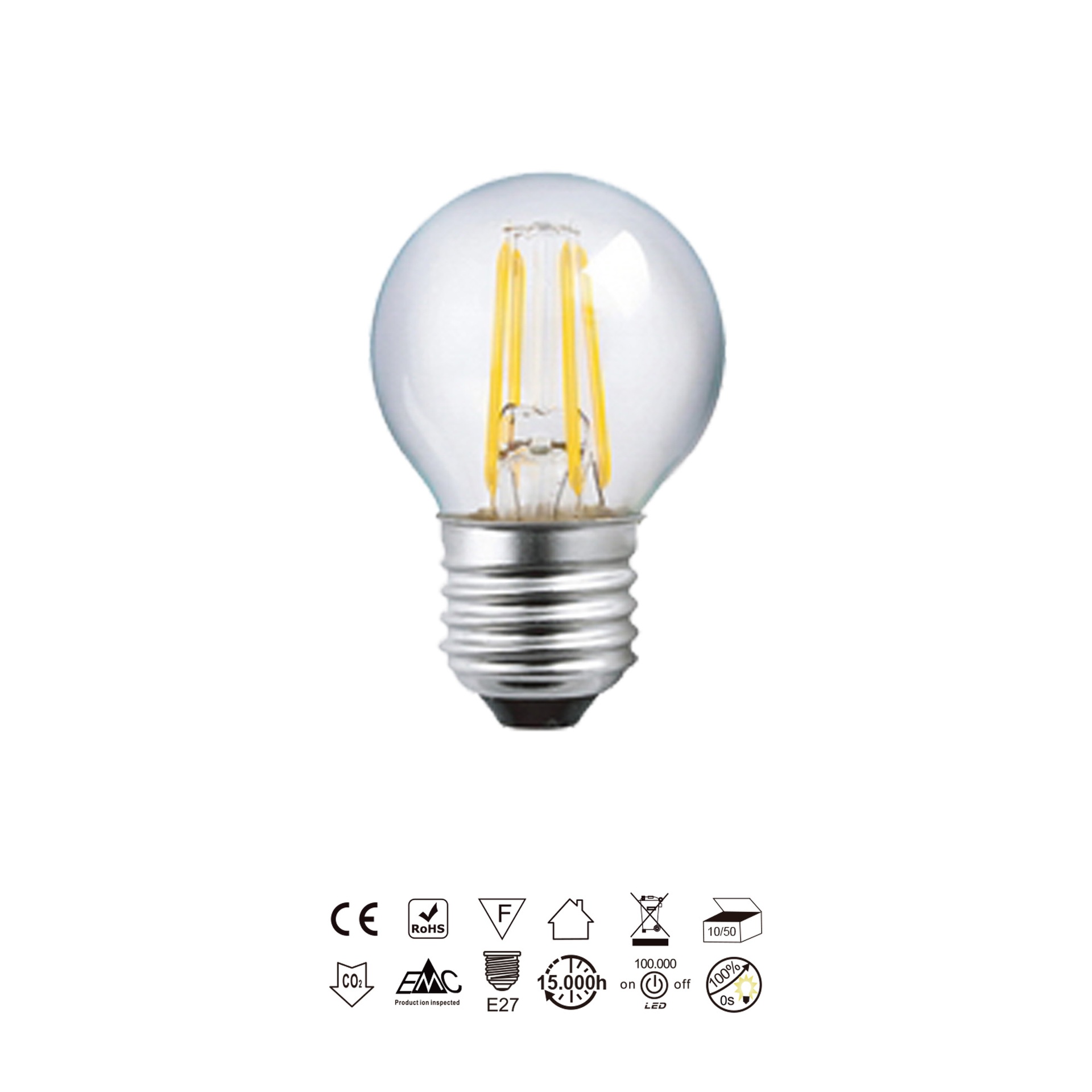 AMPOULE LED - E27 MINI FILAMENT SPHÉRIQUE - 4W - 2700K - 400Lm -360º
