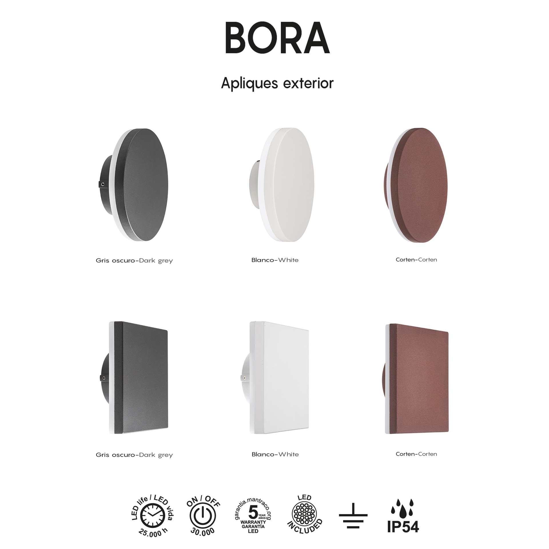BORA, conçue par MANTRA TEAM, offre une interprétation contemporaine et technique de l’extérieur. Elle propose des appliques murales d’extérieur adaptables à différents espaces. Fabriquées en aluminium/PC ou PC/blanc, les luminaires sont disponibles en finitions blanc, Corten ou gris foncé, alliant robustesse et style à chaque application. Elles intègrent la technologie LED avec des températures de couleur de 3000 K, garantissant confort et efficacité énergétique. Certifiées IP54, elles sont adaptées à une utilisation en extérieur et garantissent des performances stables même dans des conditions difficiles. BORA est conçue pour ceux qui recherchent des solutions esthétiques sans sacrifier la performance professionnelle.