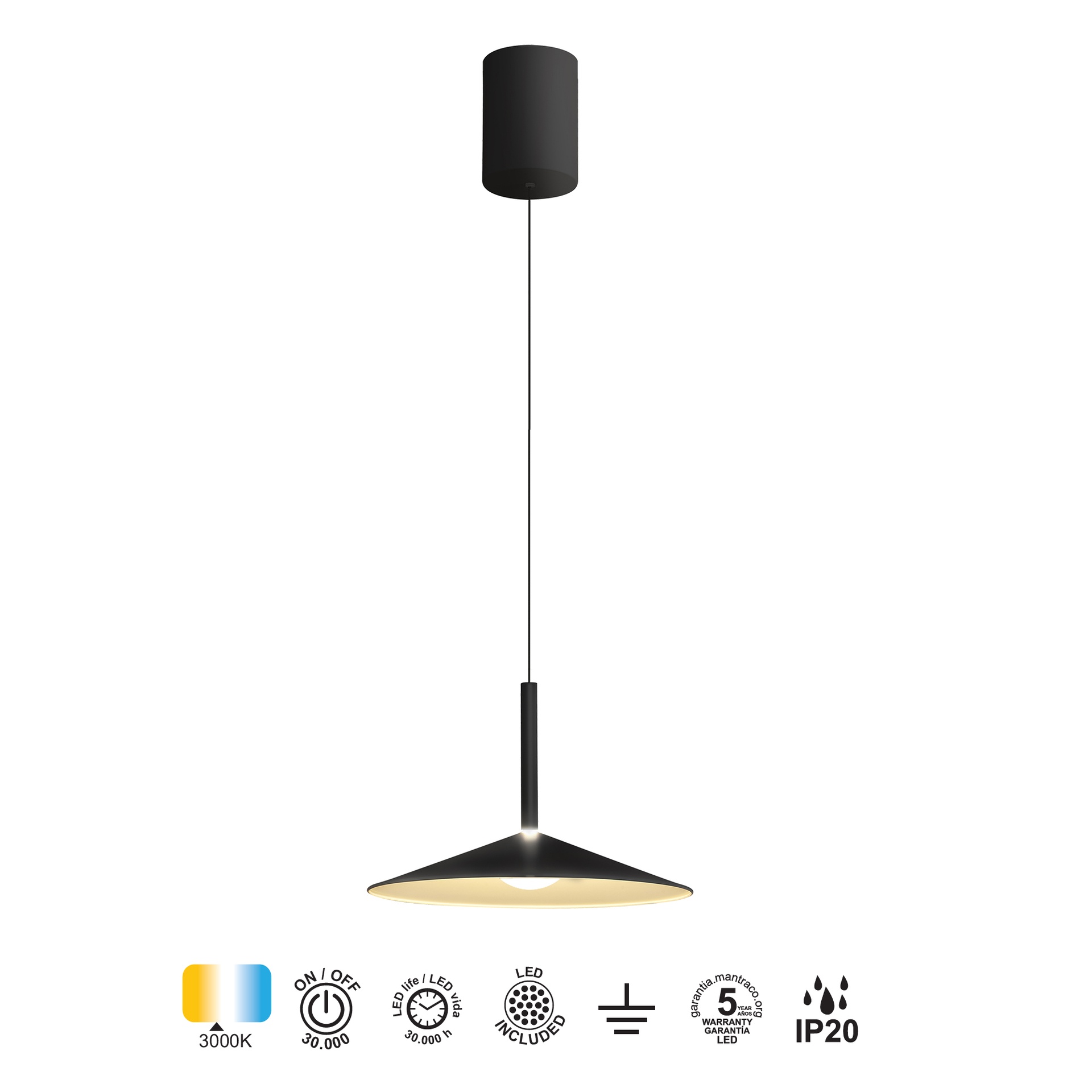 CALICE * PETITE SUSPENSION LED 1L - NOIR ET BLANC