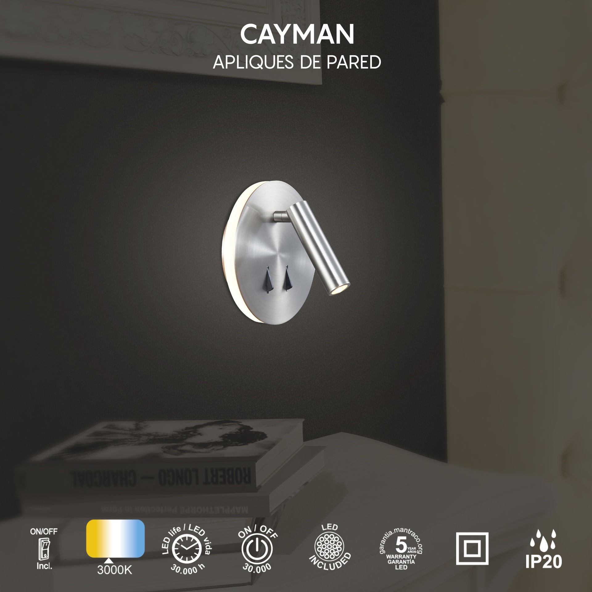 La famille CAYMAN, créée par MANTRA TEAM, apporte une vision innovante au monde de la technologie. Elle comprend des appliques murales offrant des solutions adaptables à différents espaces. Fabriquées en acrylique/blanc, fer/aluminium, ces luminaires sont disponibles en finitions blanc mat, cuir, noir mat, nickel satiné et or, offrant robustesse et style à chaque application. Elles intègrent la technologie LED avec des températures de couleur de 3000 K, garantissant confort et efficacité énergétique. Grâce à leur indice de protection IP20, elles sont idéales pour les intérieurs, garantissant durabilité et fiabilité. Une famille conçue pour répondre aussi bien aux environnements décoratifs qu’aux projets d’éclairage exigeants.