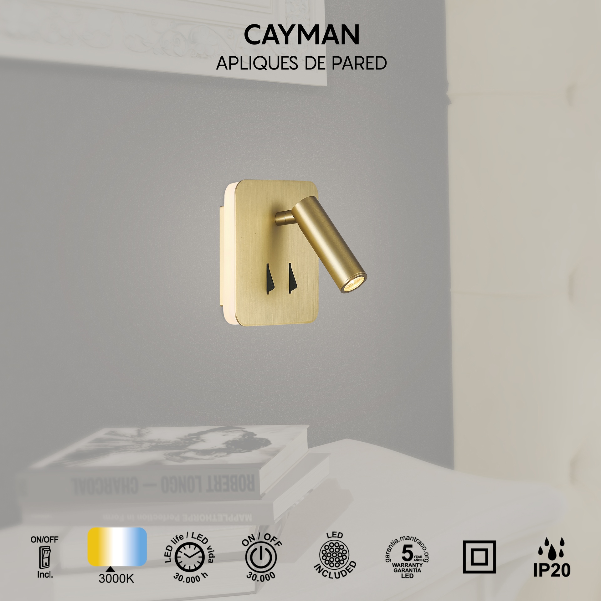 La famille CAYMAN, créée par MANTRA TEAM, apporte une vision innovante au monde de la technologie. Elle comprend des appliques murales offrant des solutions adaptables à différents espaces. Fabriquées en acrylique/blanc, fer/aluminium, ces luminaires sont disponibles en finitions blanc mat, cuir, noir mat, nickel satiné et or, offrant robustesse et style à chaque application. Elles intègrent la technologie LED avec des températures de couleur de 3000 K, garantissant confort et efficacité énergétique. Grâce à leur indice de protection IP20, elles sont idéales pour les intérieurs, garantissant durabilité et fiabilité. Une famille conçue pour répondre aussi bien aux environnements décoratifs qu’aux projets d’éclairage exigeants.
