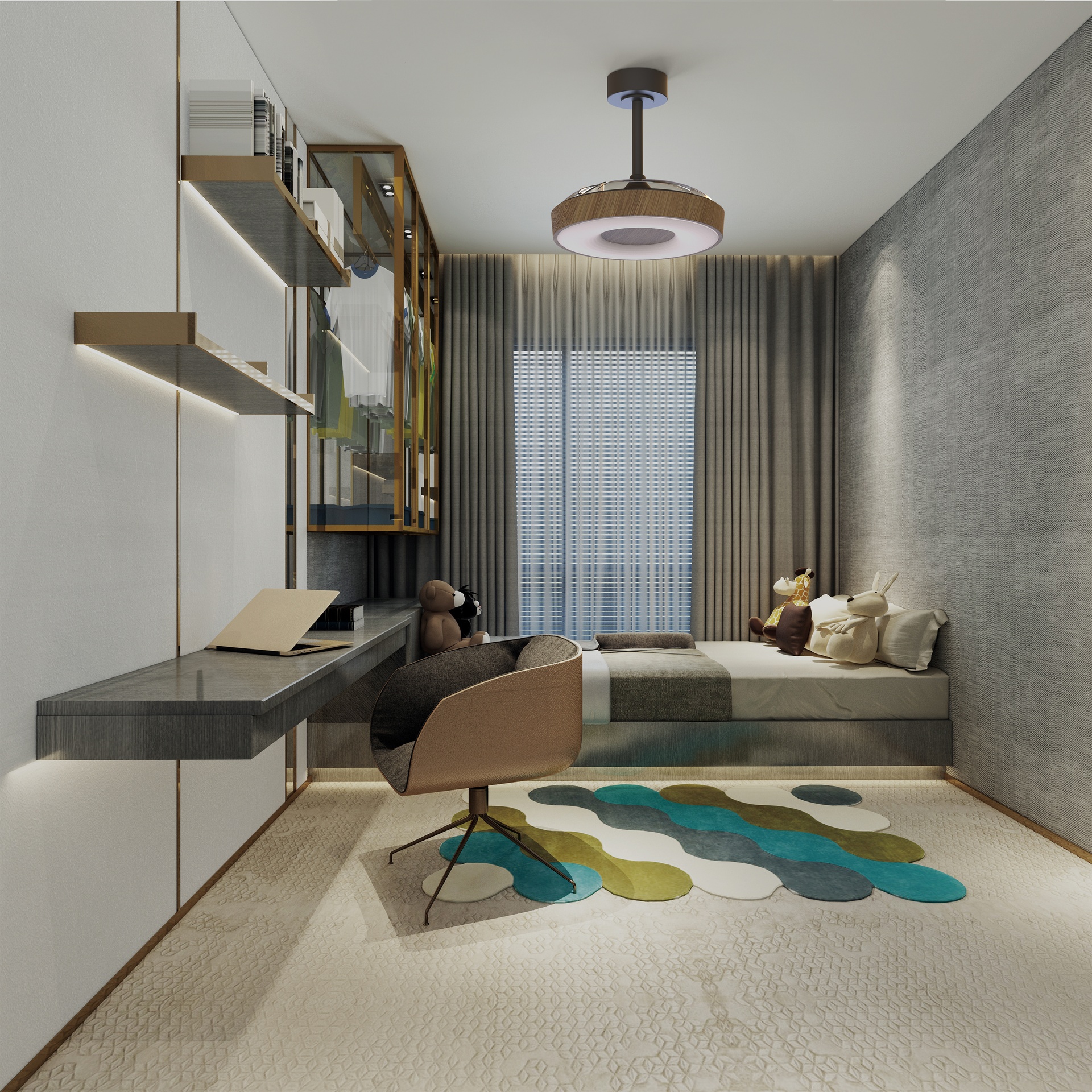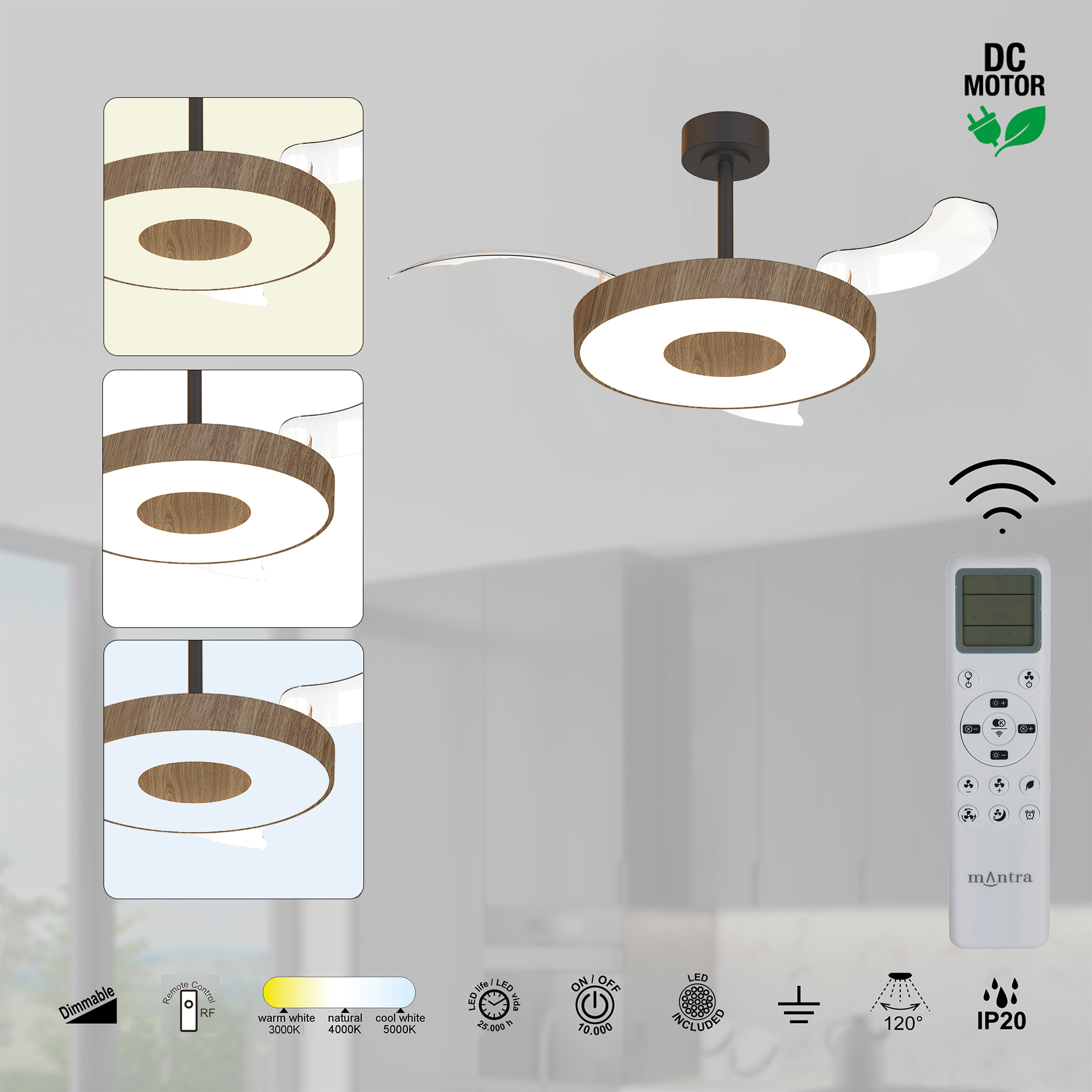 COIN FAN * VENTILADOR MEDIANO LED - NOGAL/NEGRO- CON TUYA