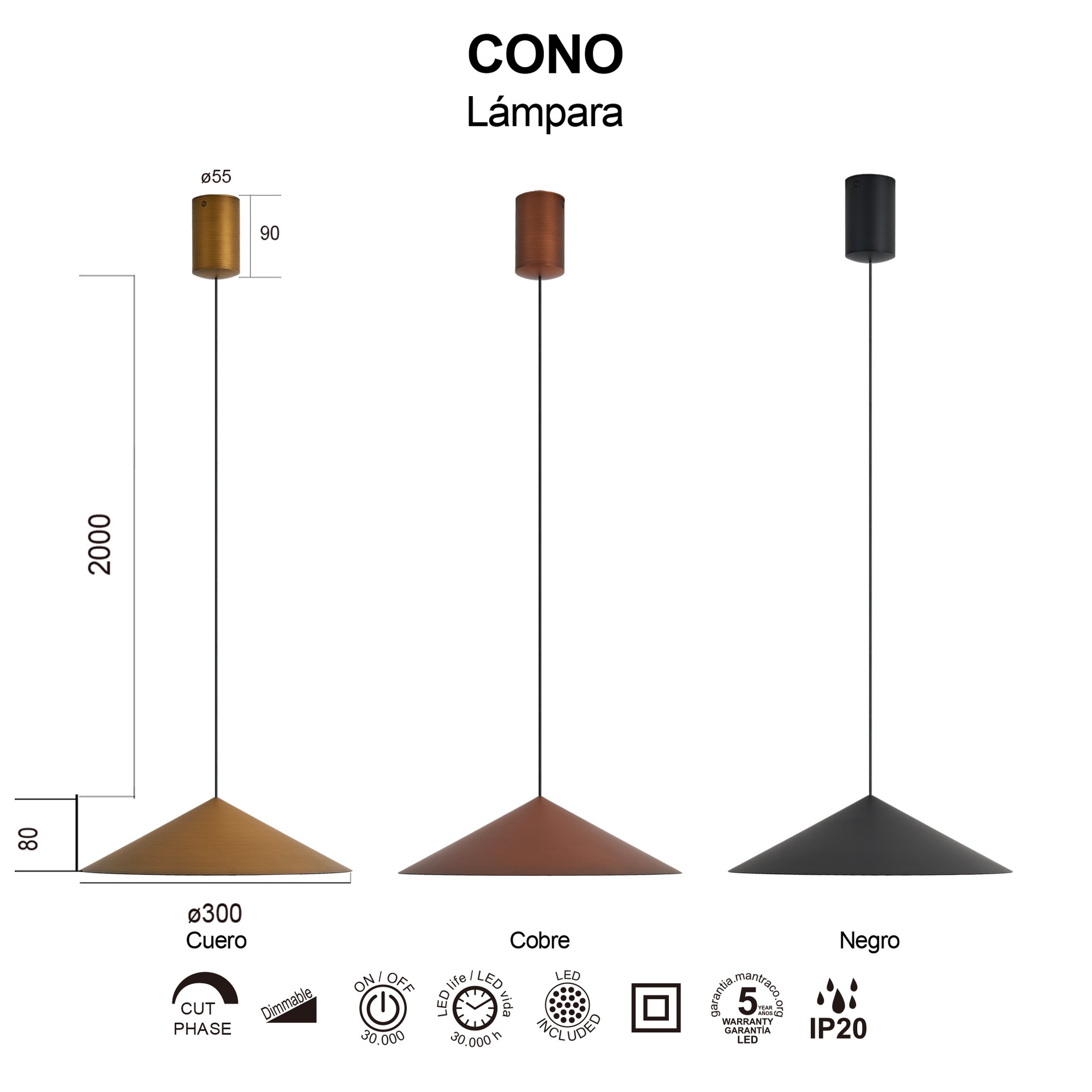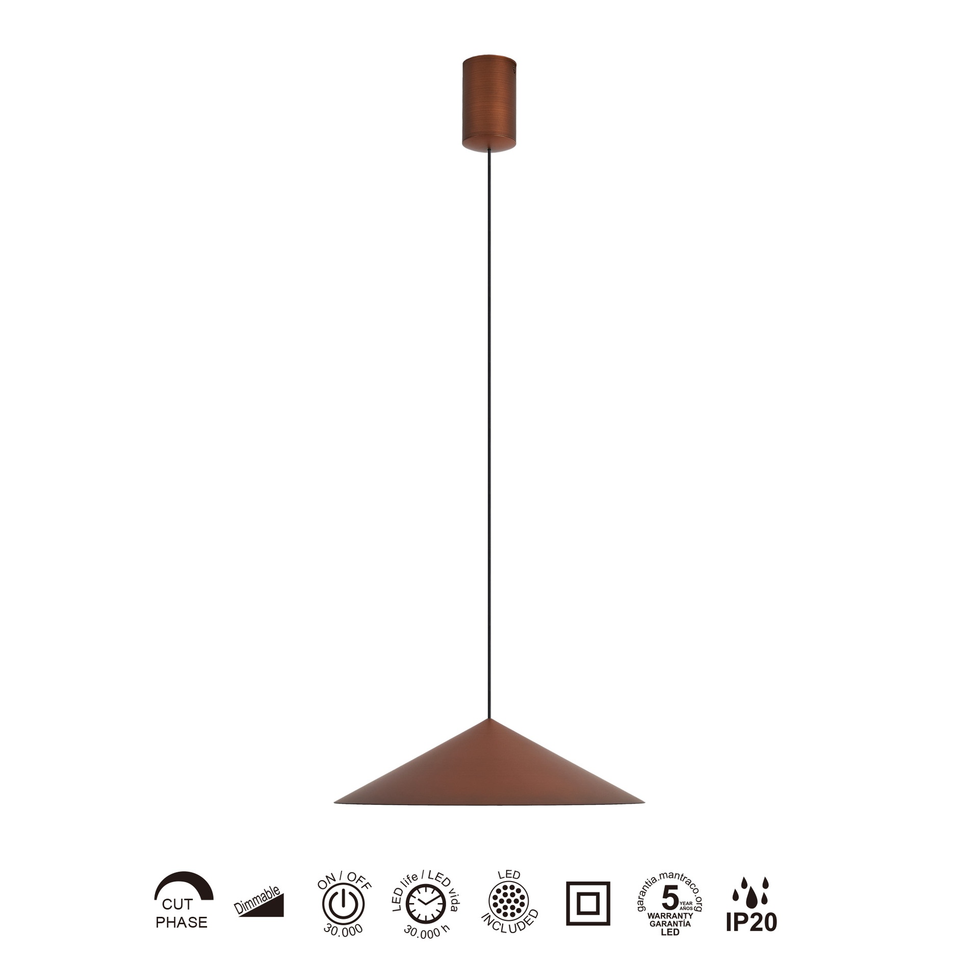 CONO * Suspension LED LED 10W - Cuivre - 30 CM - Dimable TRIAC