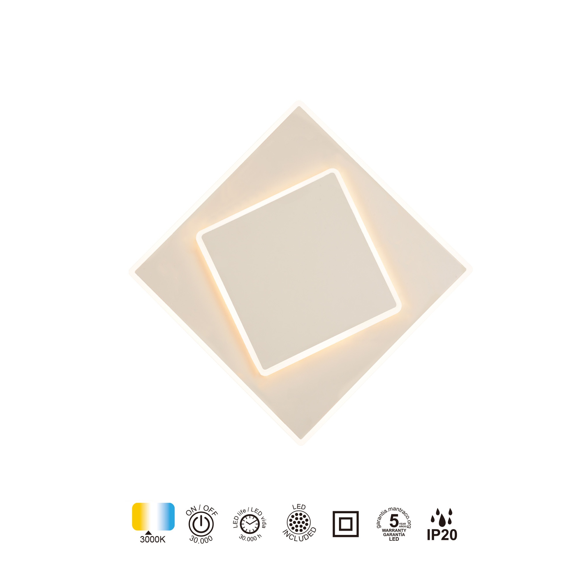 DAKLA * APPLIQUE MURALE CARRÉE À LED BLANCHE 18W