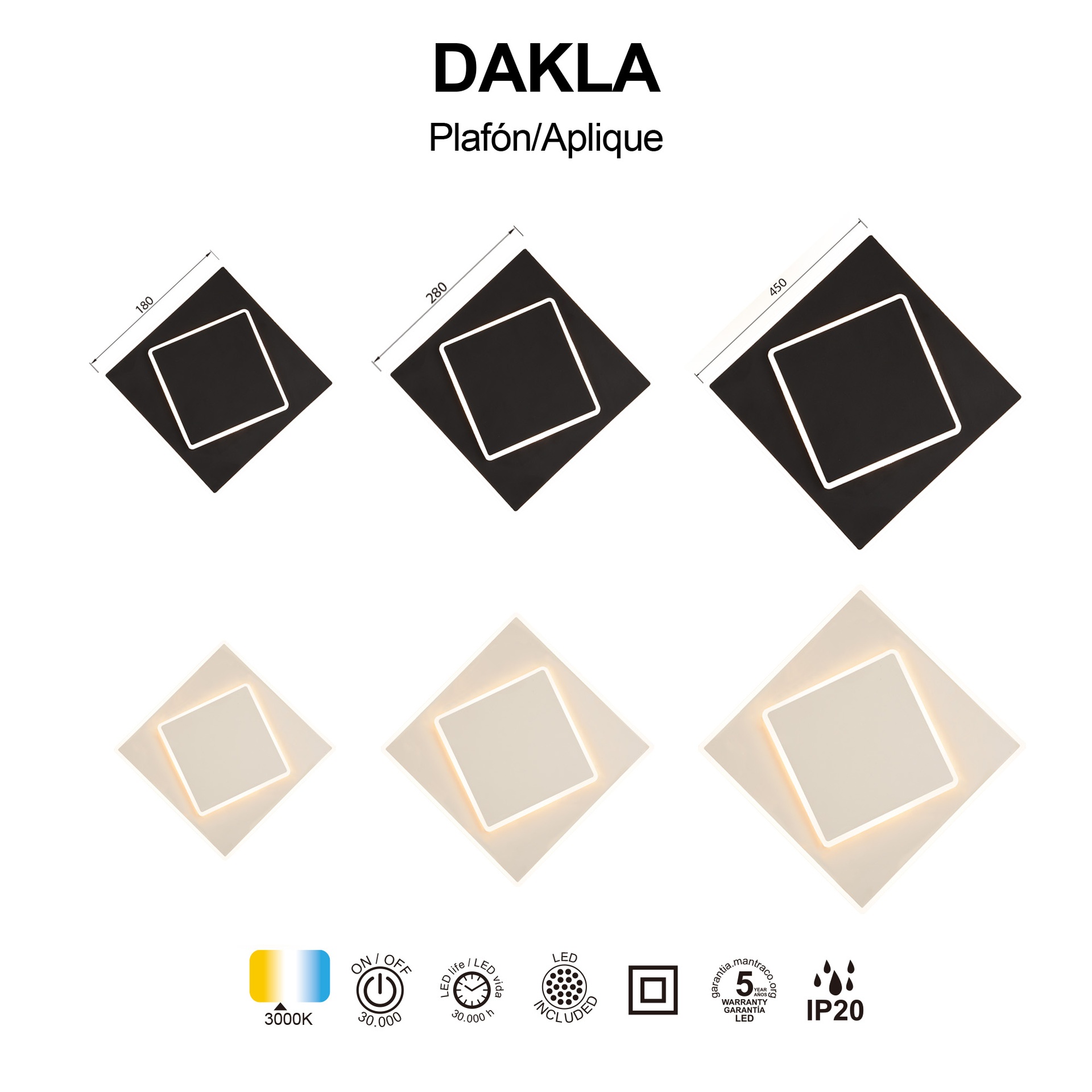 La famille DAKLA, créée par MANTRA TEAM, apporte une vision innovante au monde de la décoration intérieure. Elle comprend des appliques murales offrant des solutions adaptables à différents espaces. Fabriquées en acrylique blanc et disponibles en blanc ou en noir, ces luminaires allient robustesse et style à toutes les applications. Elles intègrent la technologie LED avec des températures de couleur de 3000 K, garantissant confort et efficacité énergétique. Grâce à leur indice de protection IP20, elles sont idéales pour les intérieurs, garantissant durabilité et fiabilité. DAKLA est synonyme de design soigné et d’efficacité lumineuse pour tous types d’espaces.