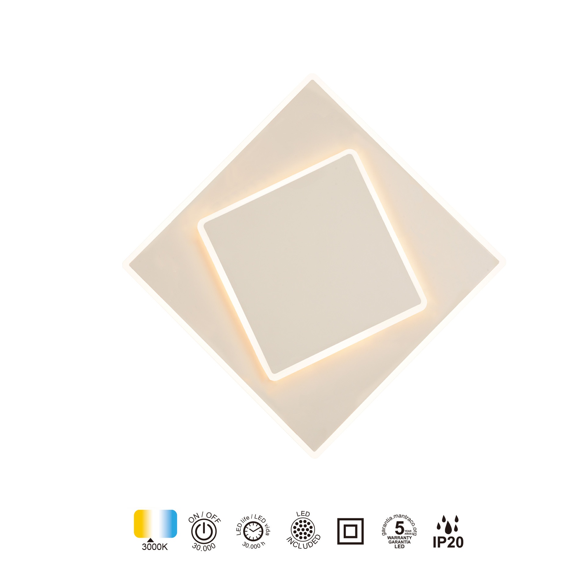 DAKLA * APPLIQUE MURALE CARRÉE À LED BLANCHE 30W