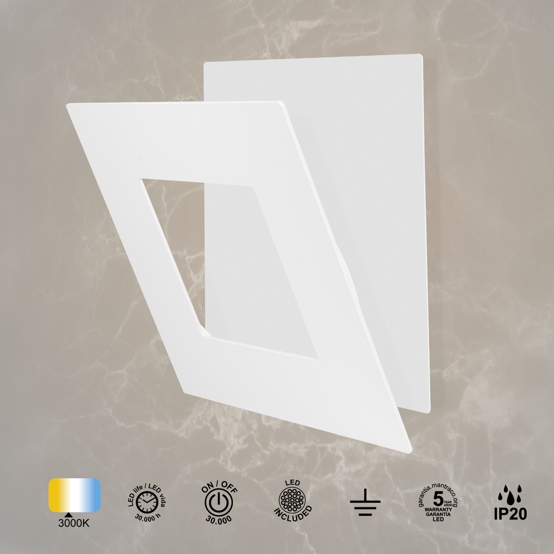 DALIA * APPLIQUE CARRÉE 40W - BLANC + BLANC