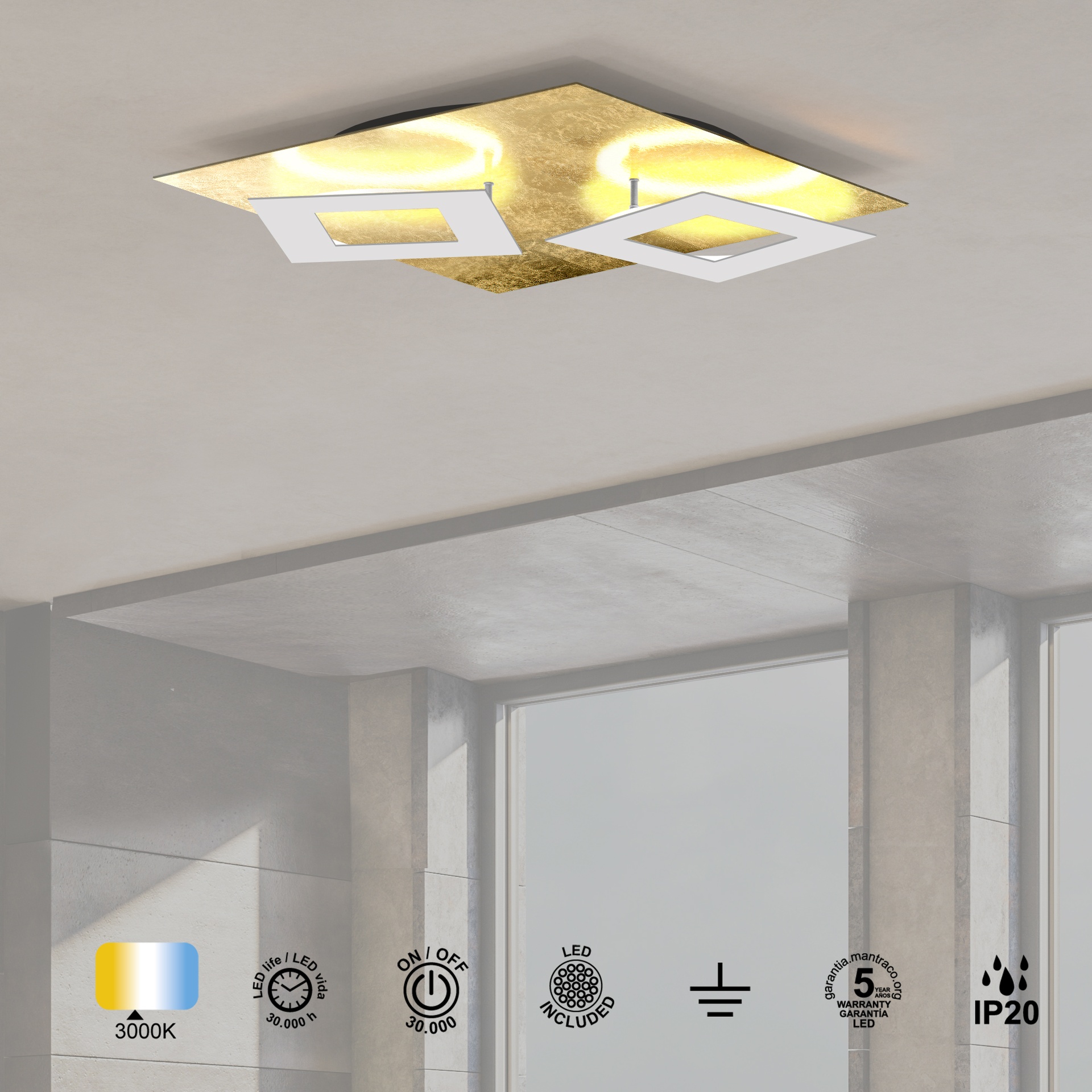 DALIA * PLAFONNIER CARRÉ 24W+24W - OR + BLANC