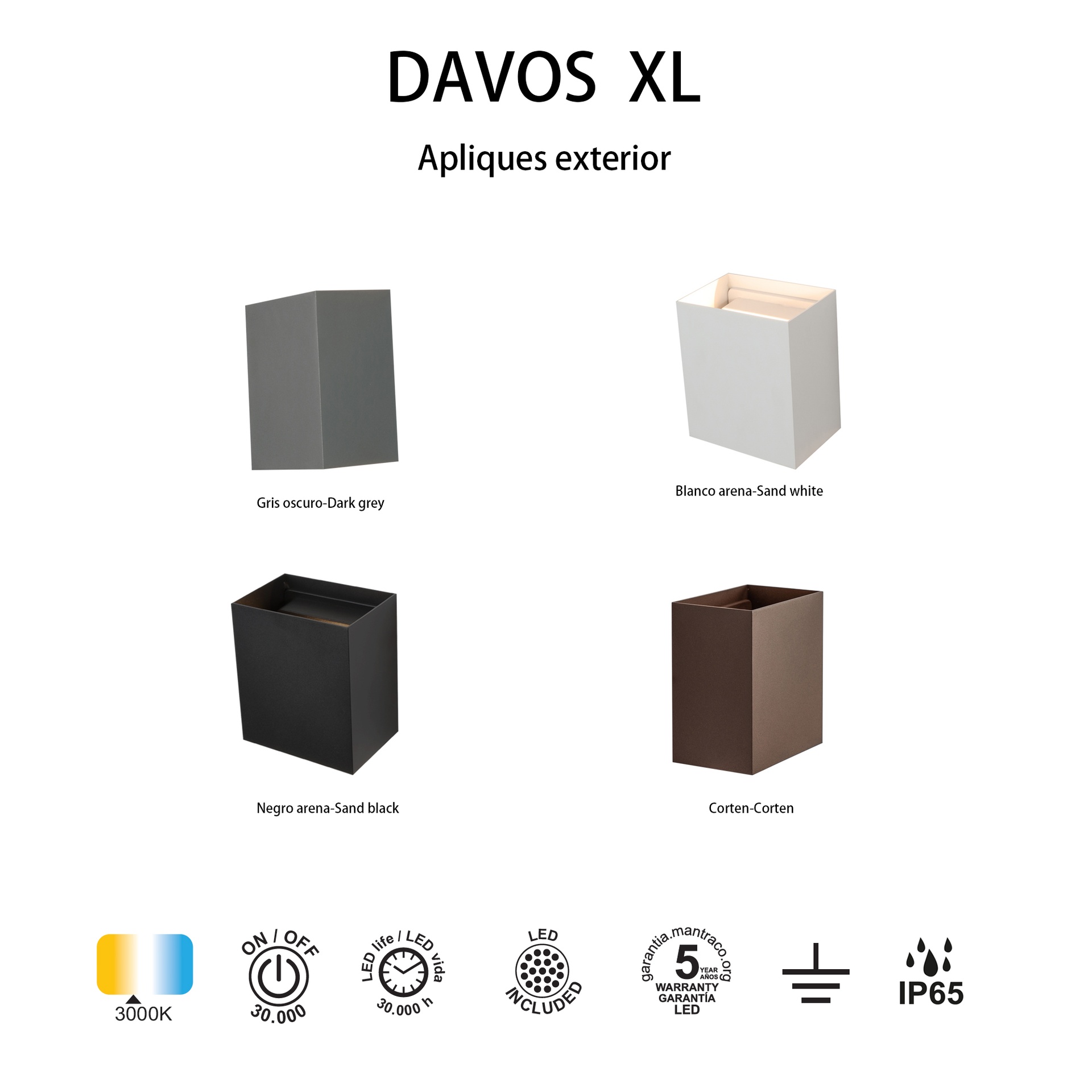 La famille DAVOS, créée par MANTRA TEAM, apporte une vision innovante à l’univers de l’éclairage extérieur. Elle comprend des appliques murales d’extérieur offrant des solutions adaptables à différents espaces. Fabriqués en aluminium, ces luminaires sont disponibles en finitions blanc sable, blanc, Corten, gris foncé, noir, noir sable et or, apportant robustesse et style à chaque application. Ils intègrent la technologie LED avec des températures de couleur de 2700K, 3000K et 4000K, garantissant confort et efficacité énergétique. Certifiés IP54 et IP65, ils sont conçus pour une utilisation en extérieur et garantissent des performances stables même dans des conditions difficiles. Une solution qui répond aux besoins des particuliers comme des professionnels de l’éclairage.