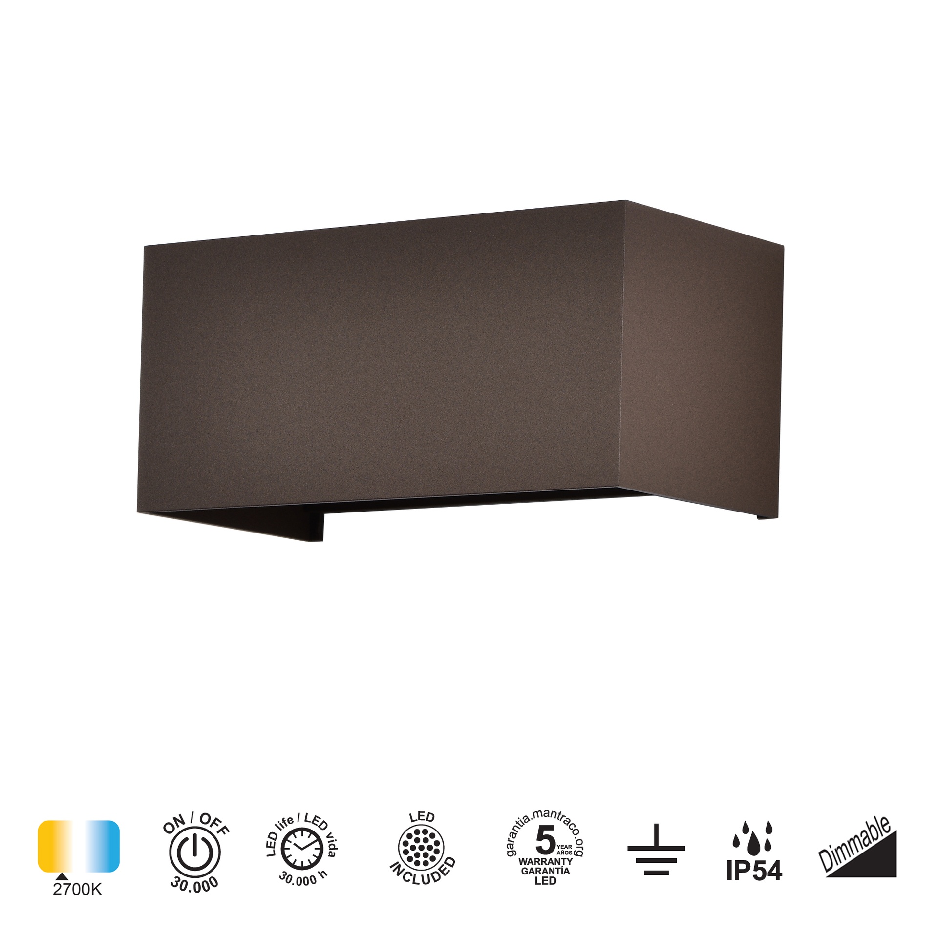 DAVOS * APPLIQUE D'EXTÉRIEUR LED * 4*6W 2700K DIMMABLE CORTEN