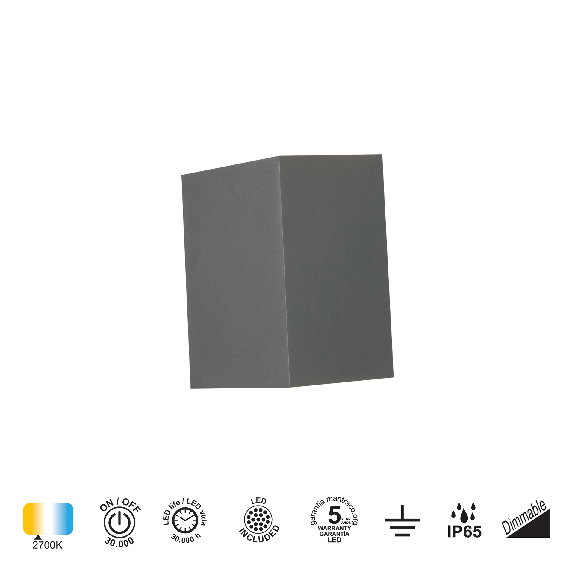 DAVOS * APPLIQUE D'EXTÉRIEUR LED* 2*10W 2700K DIMMABLE GRIS FONCÉ