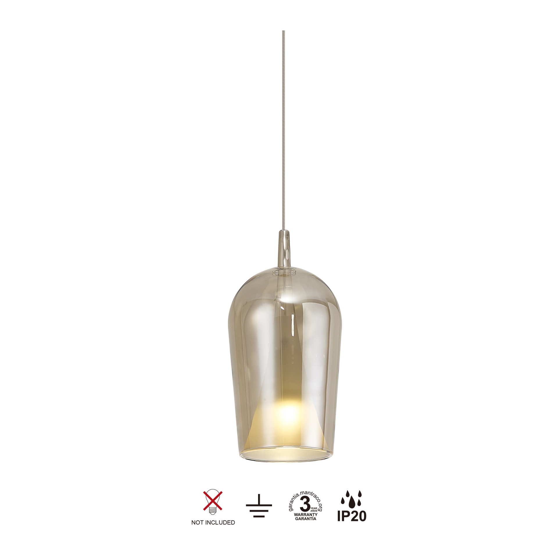 ELSA * SUSPENSION COUPE VERRE - E27 - BRONZE + OPALE (SANS SOCLE)