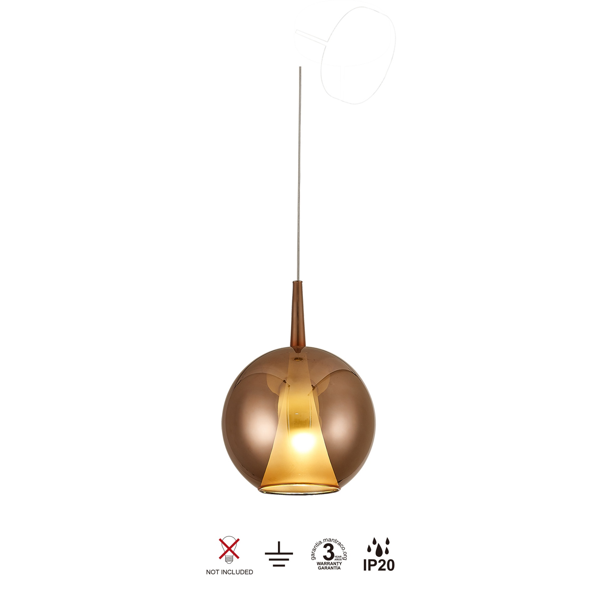ELSA * SUSPENSION BOULE DE VERRE - E27 - CUIVRE + OPALE (SANS SOCLE)