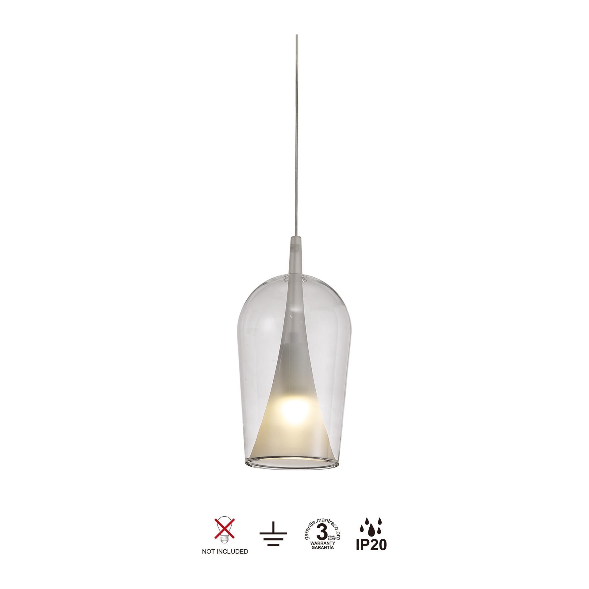 ELSA * SUSPENSION COUPE VERRE - E27 - TRANSPARENT + OPALE (SANS SOCLE)