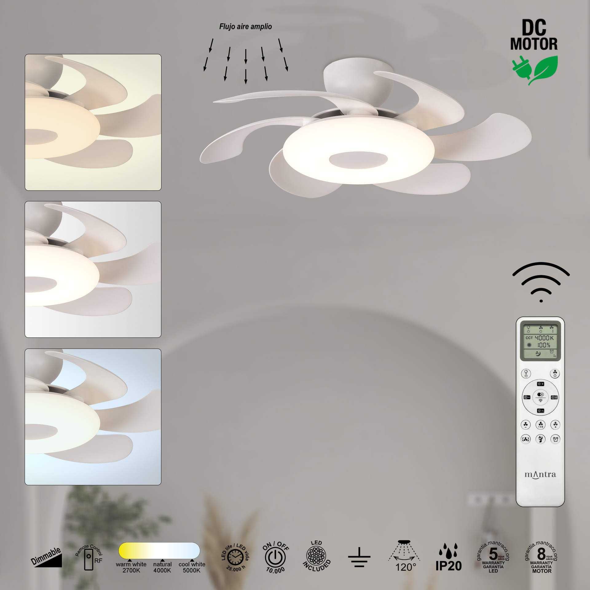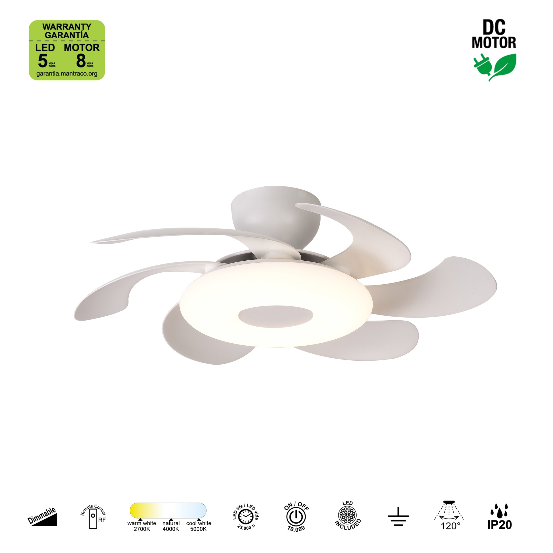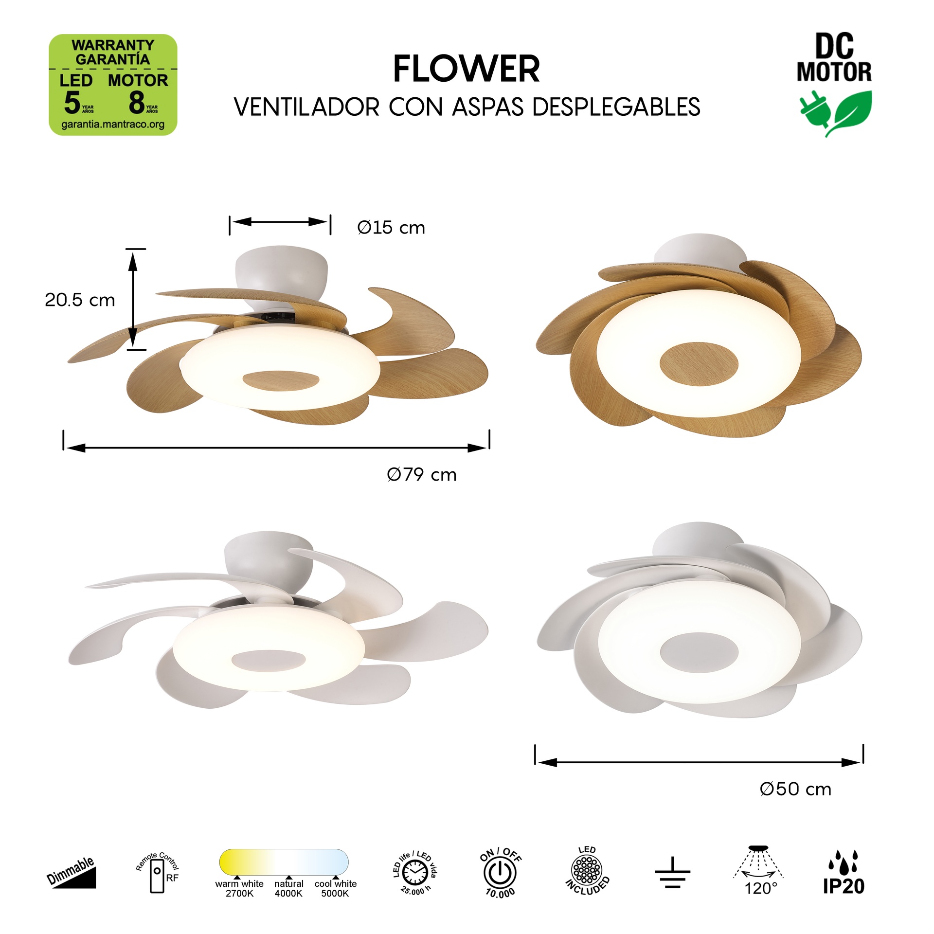 FLEUR * Ventilateur LED 24W-3000K-5000K *****L*****
