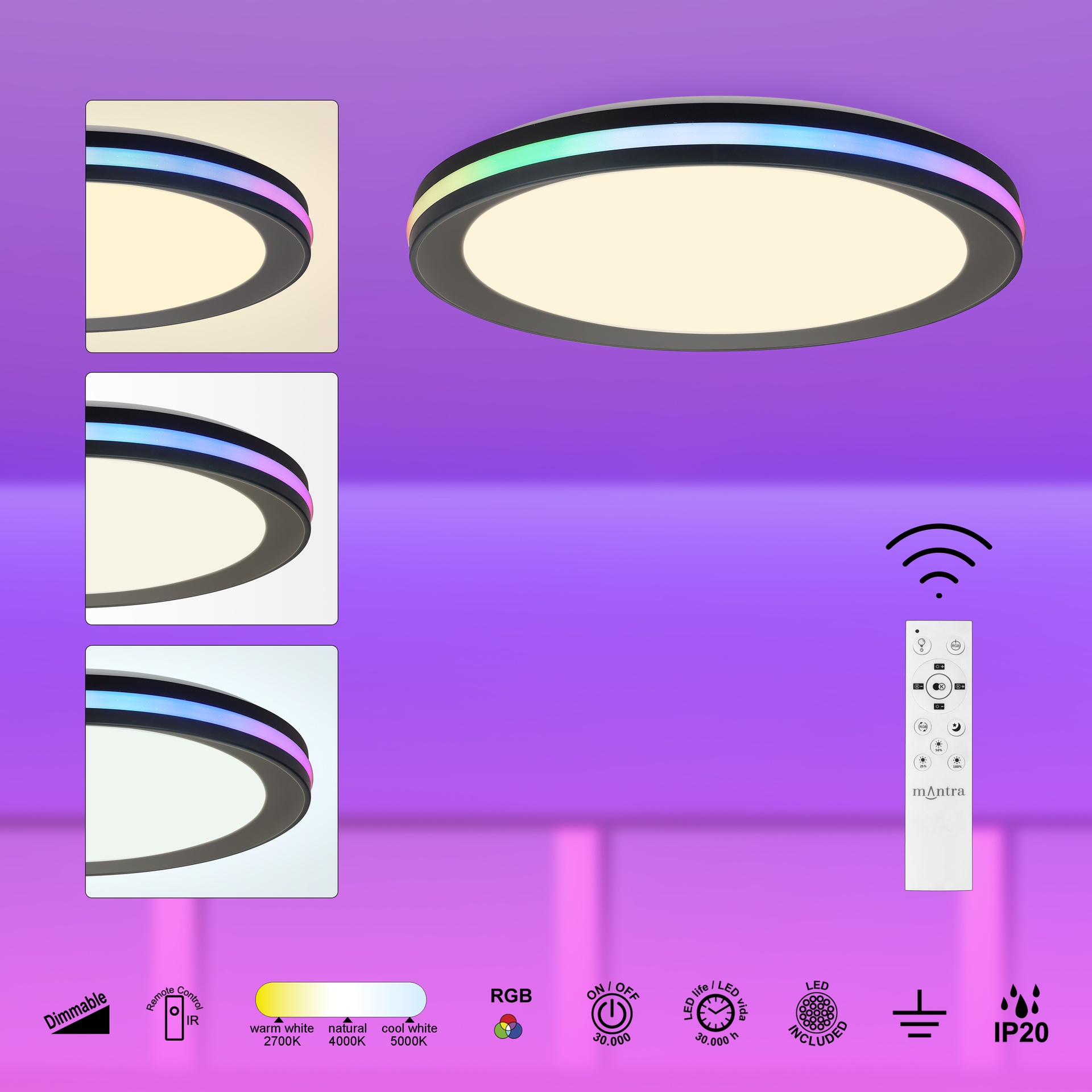 La gamme GAMER, créée par MANTRA TEAM, apporte une vision innovante au monde de la ventilation. Elle se compose de ventilateurs de plafond offrant des solutions adaptables à différents espaces. Fabriqués en acrylique/blanc, diffuseur/acrylique, les luminaires sont disponibles en blanc ou en noir, apportant robustesse et style à chaque application. Ils intègrent la technologie LED avec des températures de couleur de 3000K à 6500K, garantissant confort et efficacité énergétique. Grâce à leur indice de protection IP20, ils sont parfaits pour les intérieurs, garantissant durabilité et fiabilité. Une solution qui répond aux besoins des particuliers comme des professionnels de l’éclairage.