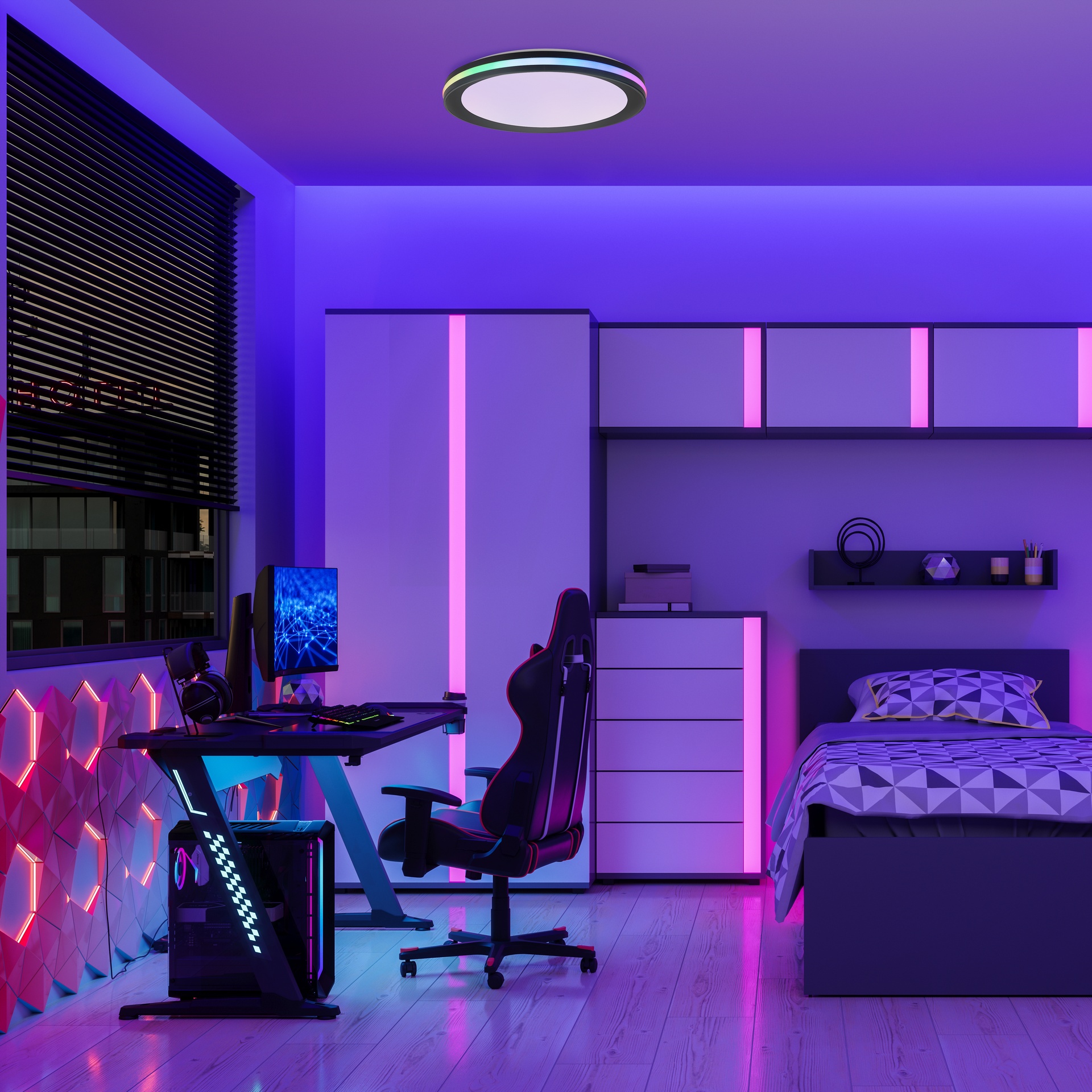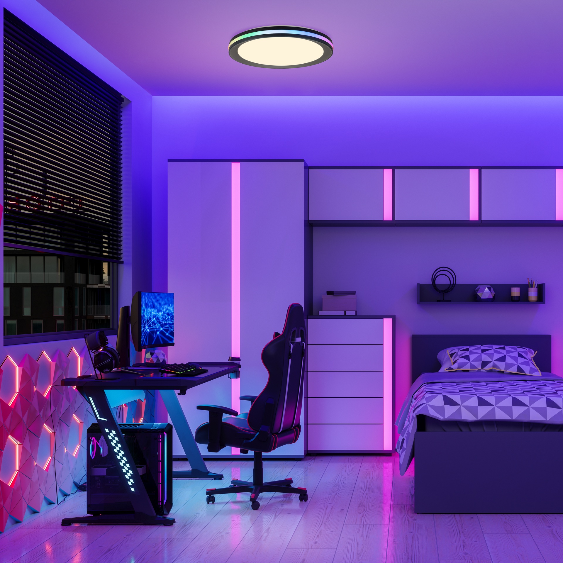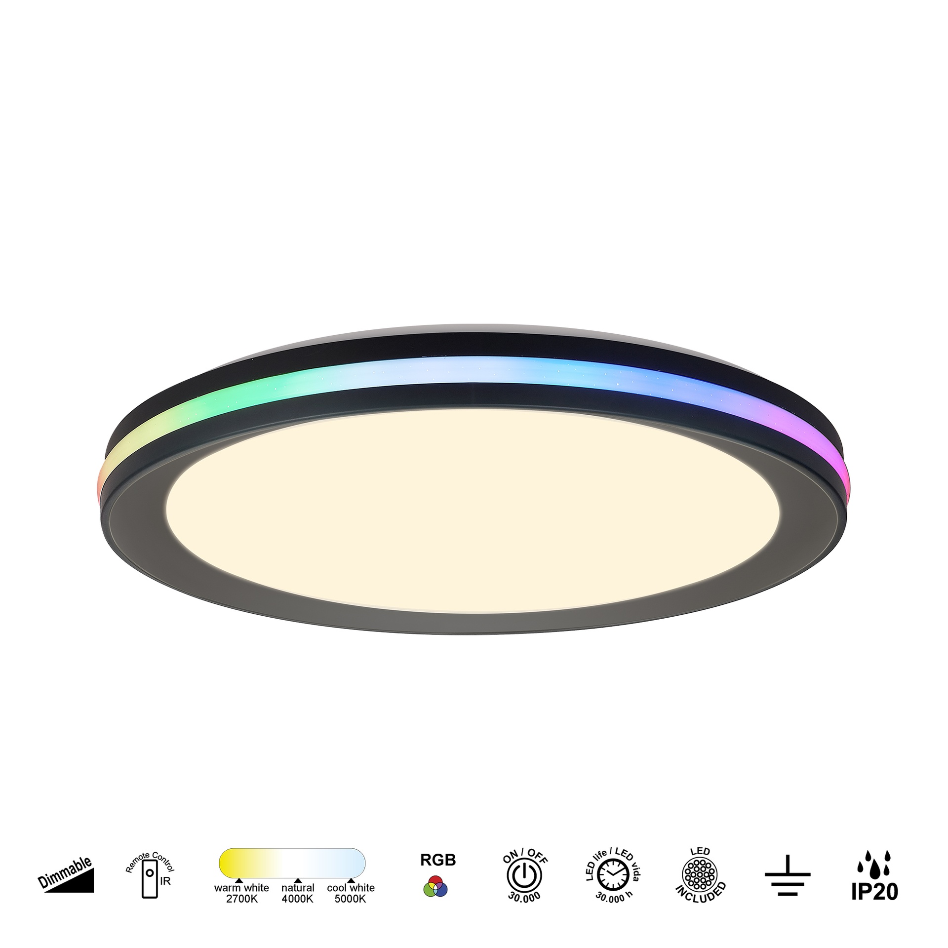 GAMER * PLAFONNIER NOIR - RGB - 40 CM - 3200 LMS - TÉLÉCOMMANDE + RGB *****L*****
