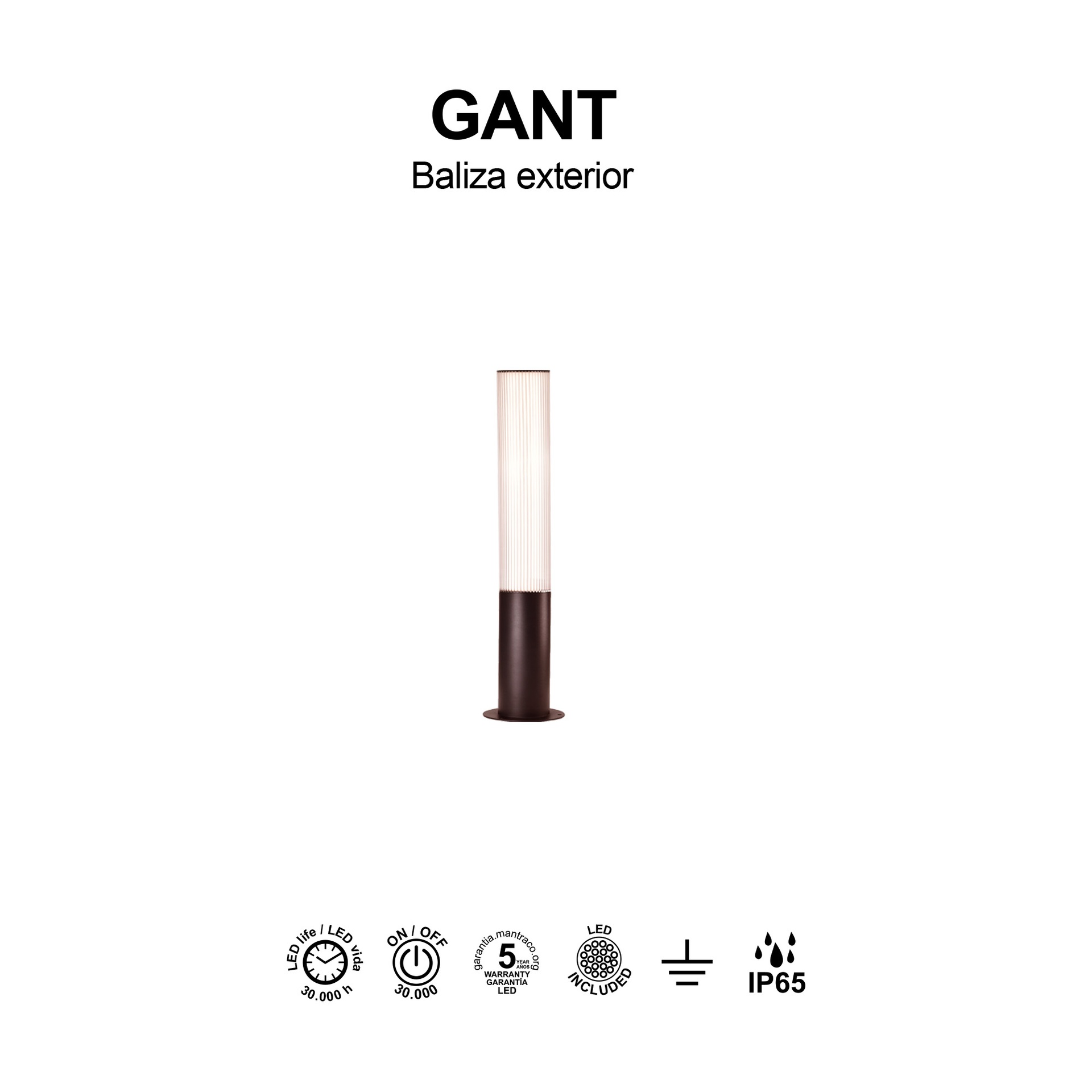 GANT * BOLLARD 65CM IP65 18W 3000K CORTEN