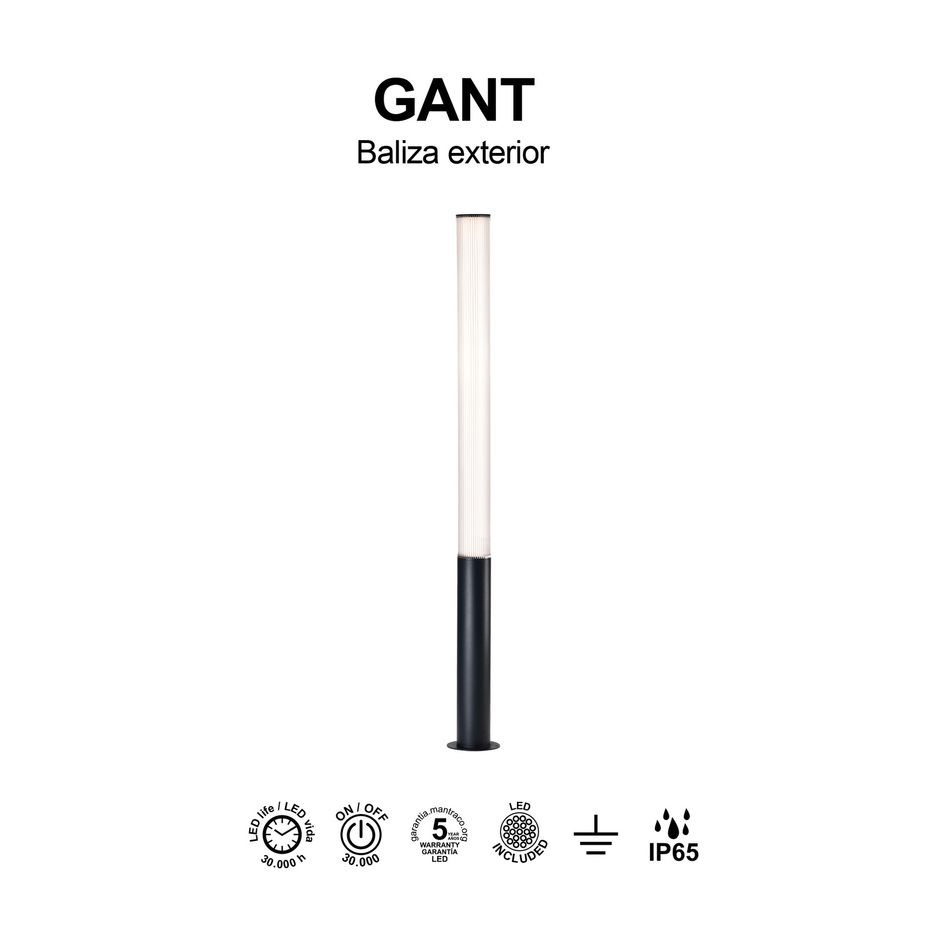 GANT * BOLLARD 155CM IP65 32W 3000K NOIR