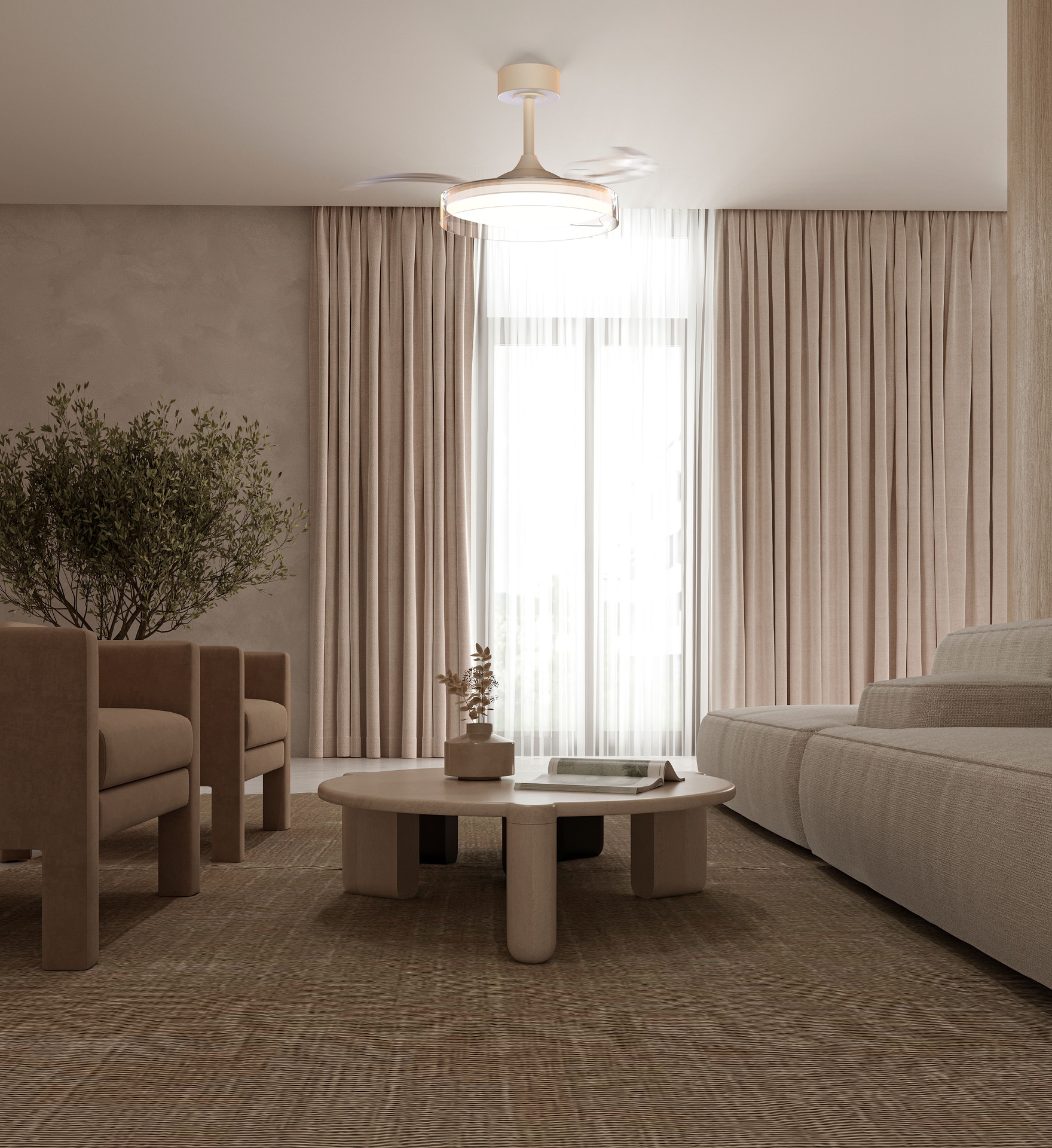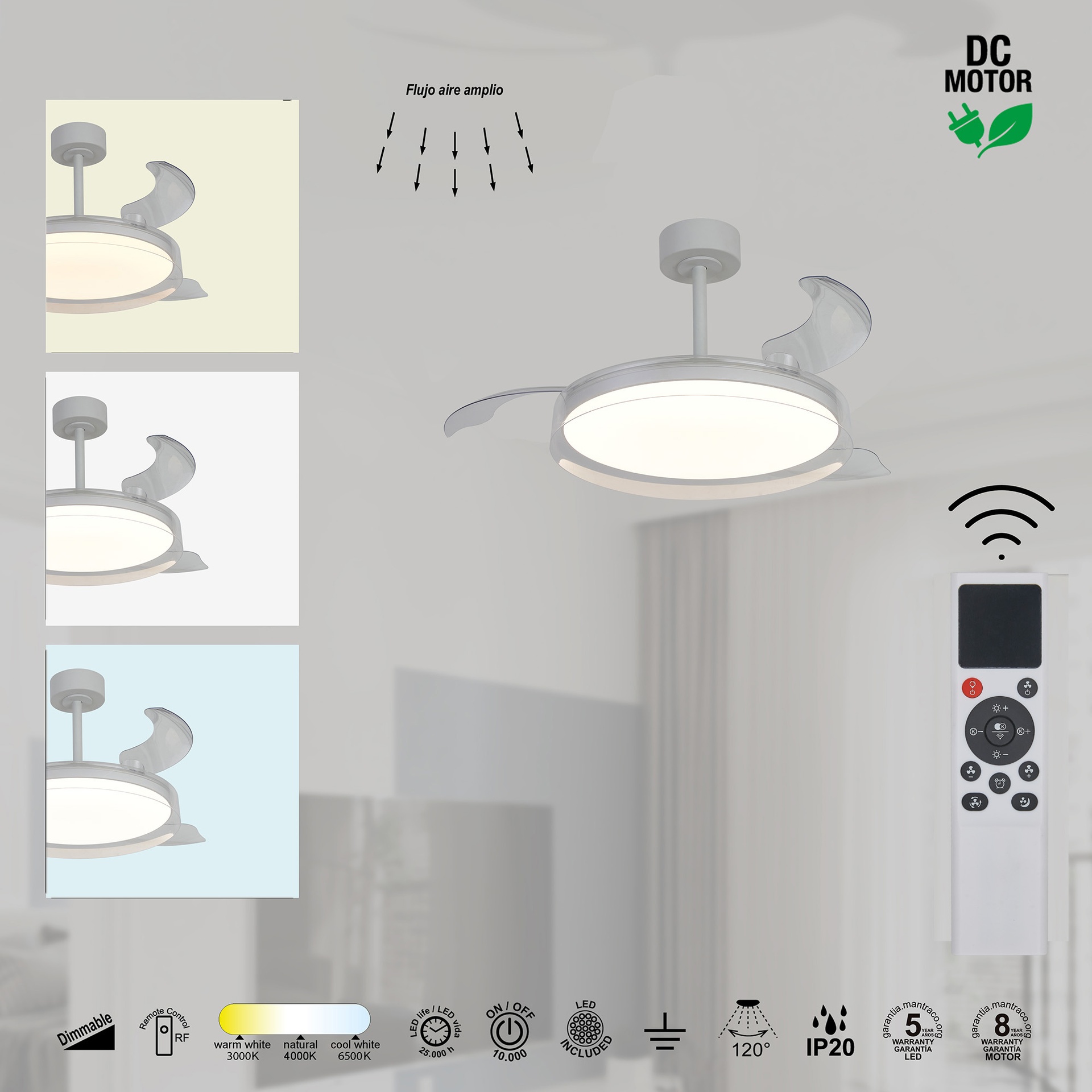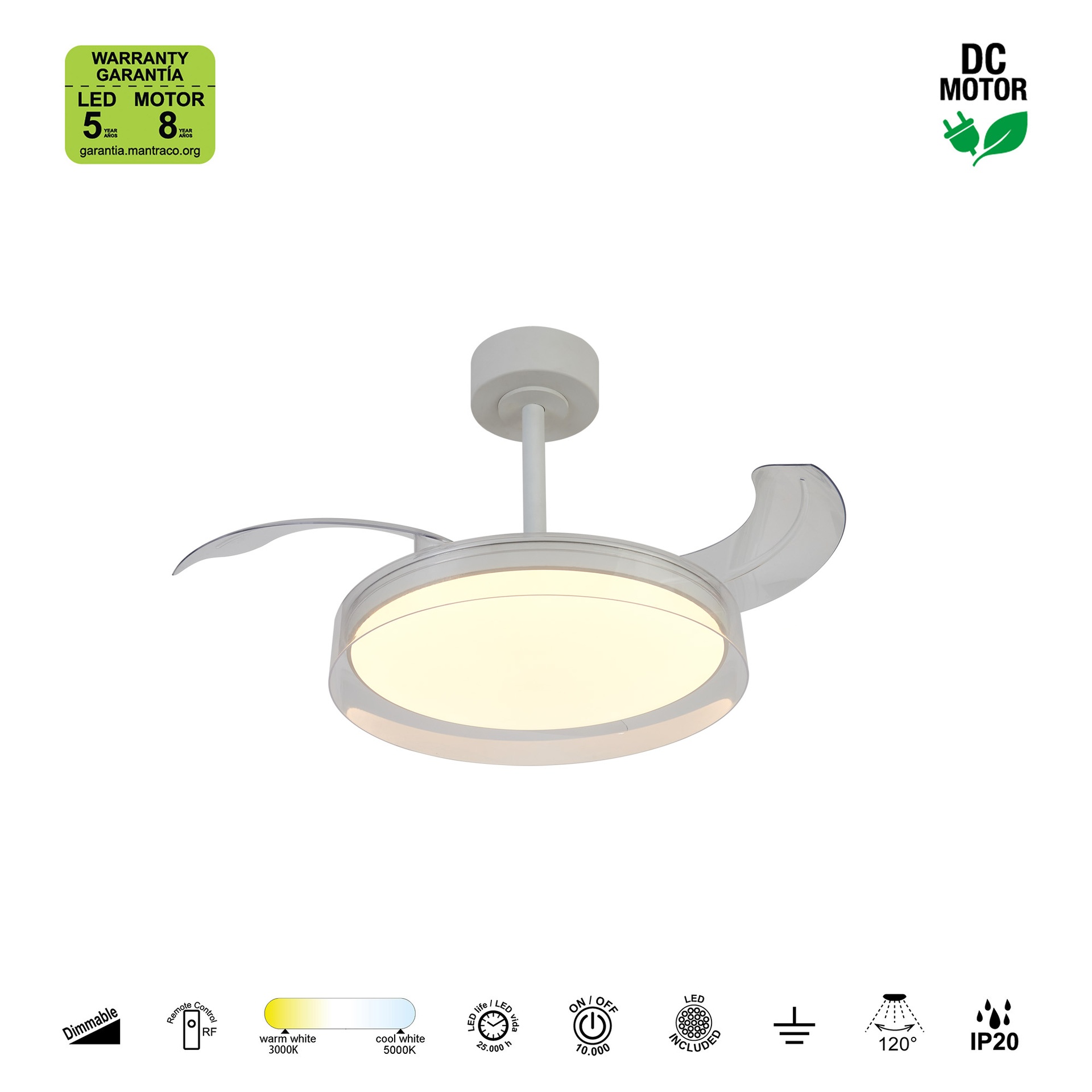 GLASS FAN * VENTILATEUR PLAFONNIER 44 cm - BLANC-TRANSPARENTE