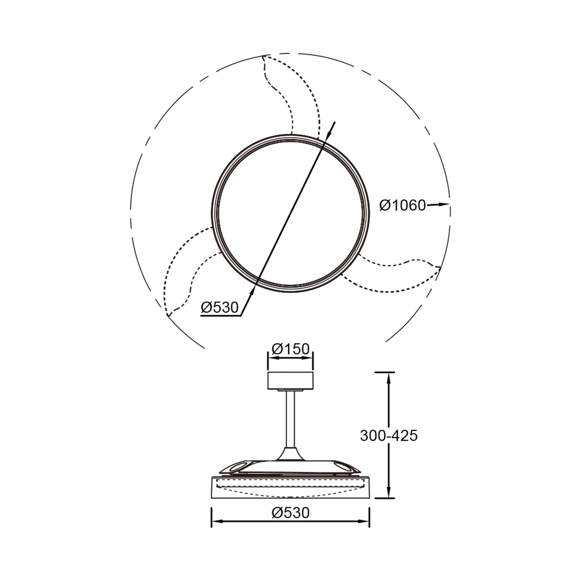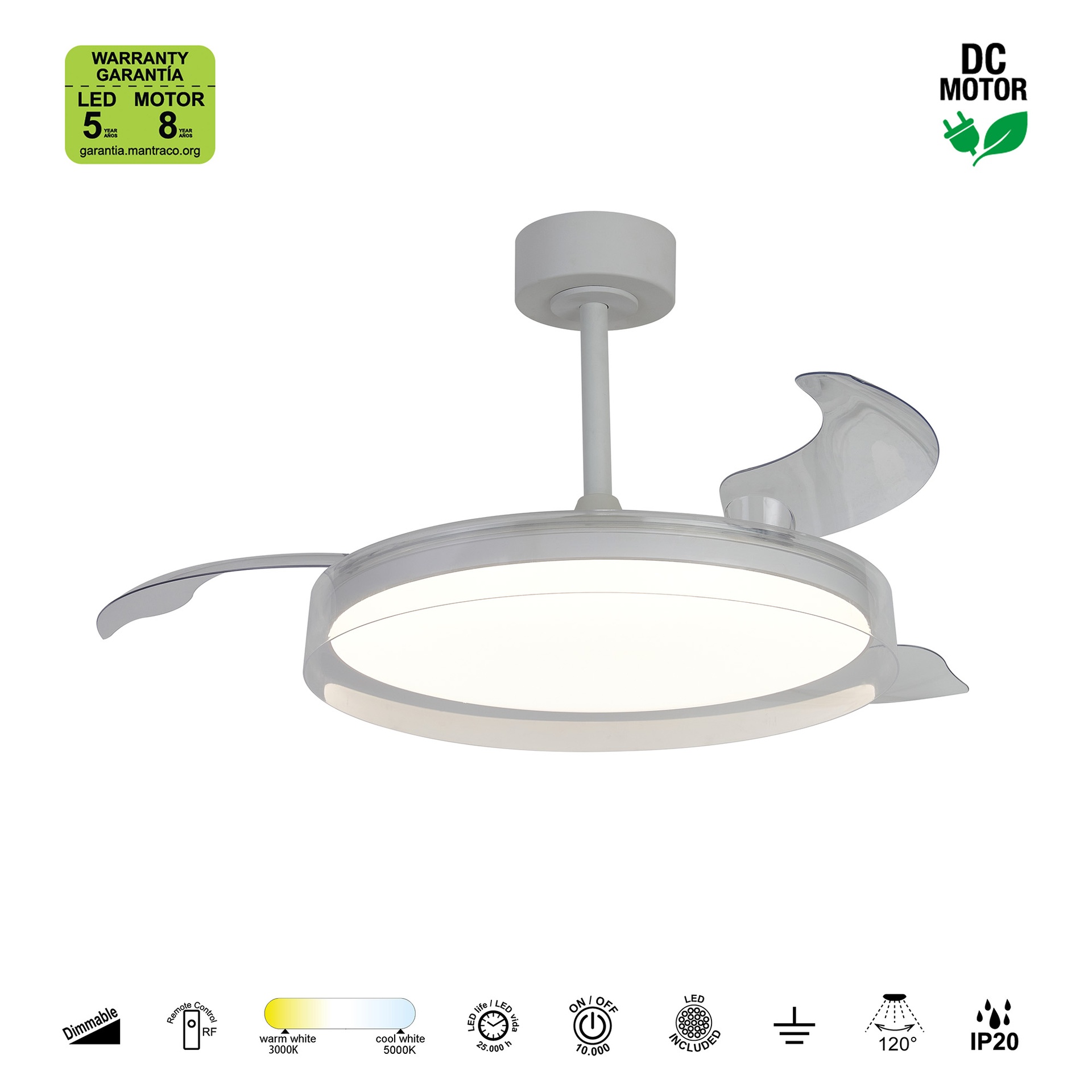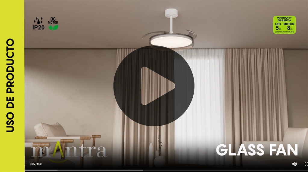 GLASS FAN * VENTILATEUR PLAFONNIER 53 cm - BLANC-TRANSPARENTE