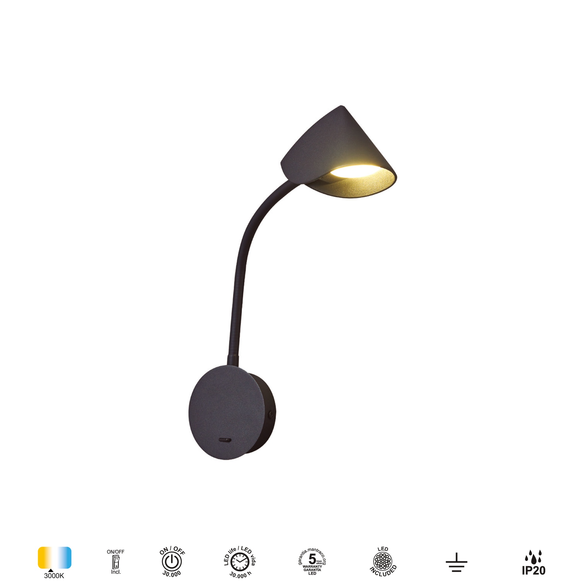 GOA * APPLIQUE LED BRAS DE LECTURE 6W 3000K NOIR