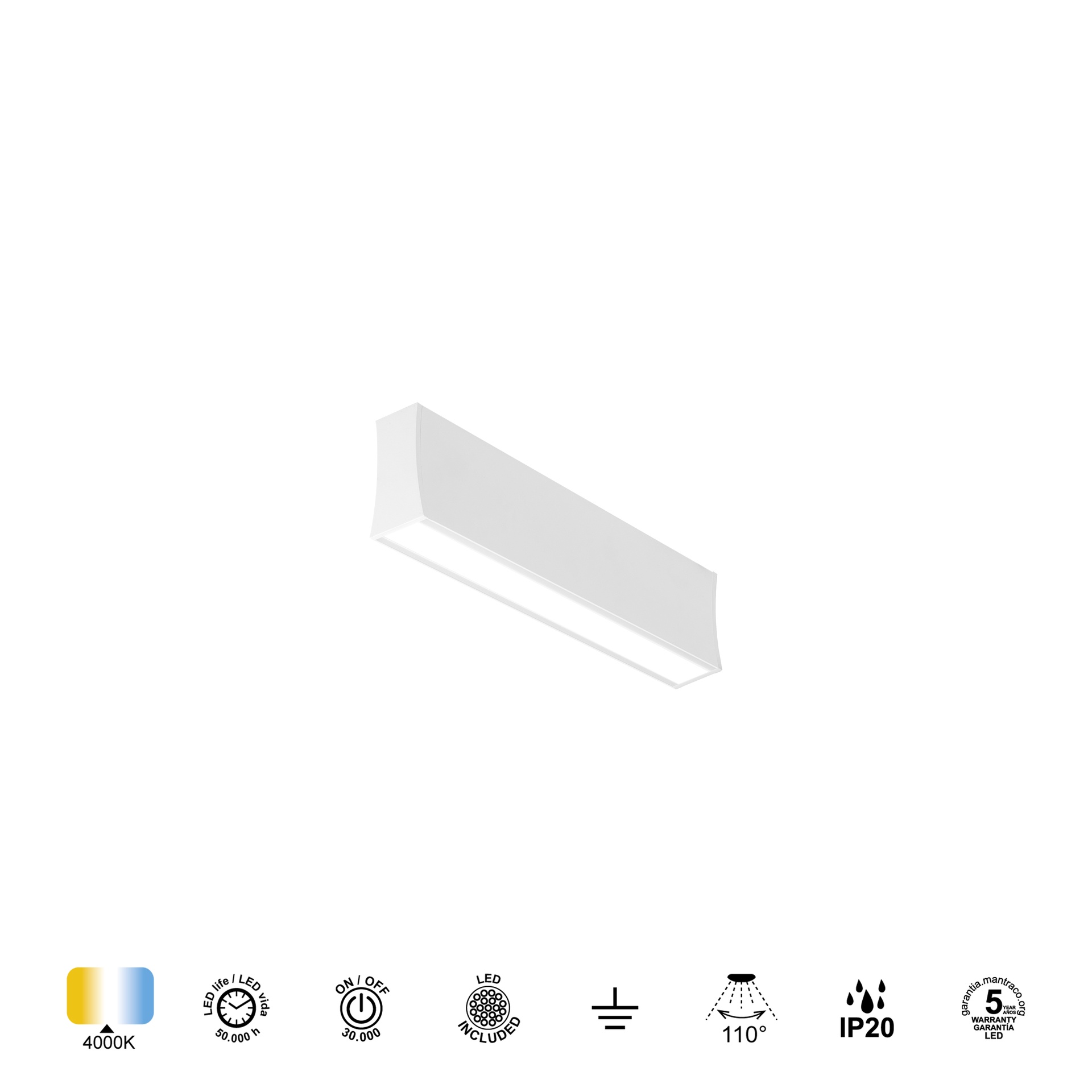 HANOK * APPLIQUE LED 14W 4000K 110º BLANC
