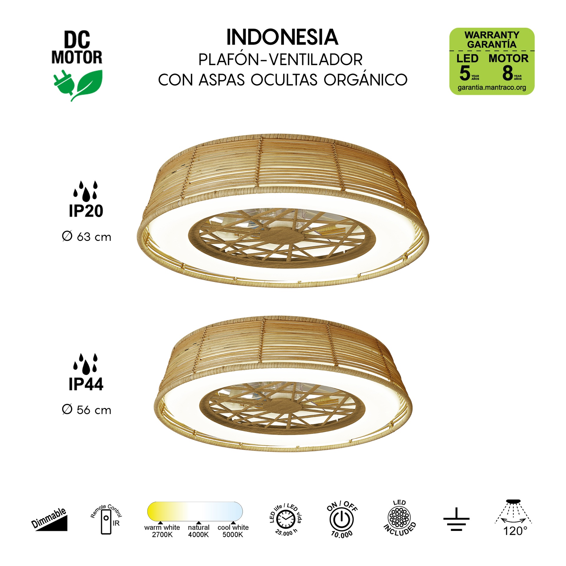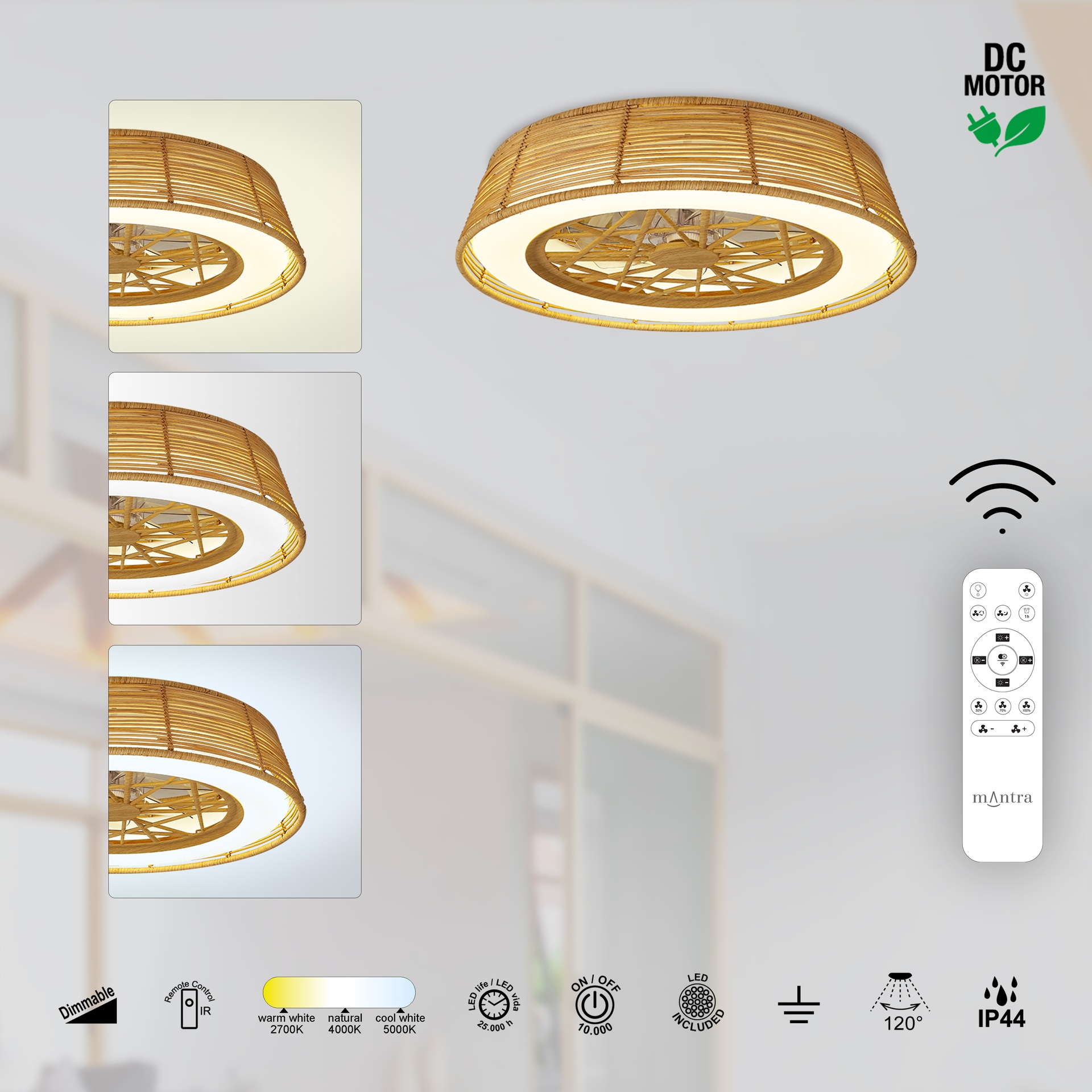 MINI * PLAFOND / VENTILATEUR INDONÉSIE - ROTIN