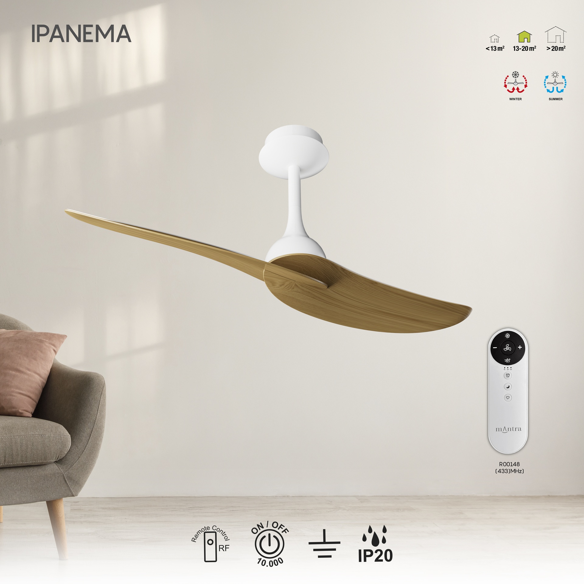 IPANEMA * VENTILATEUR - BLANC/BOIS - 2 PALES