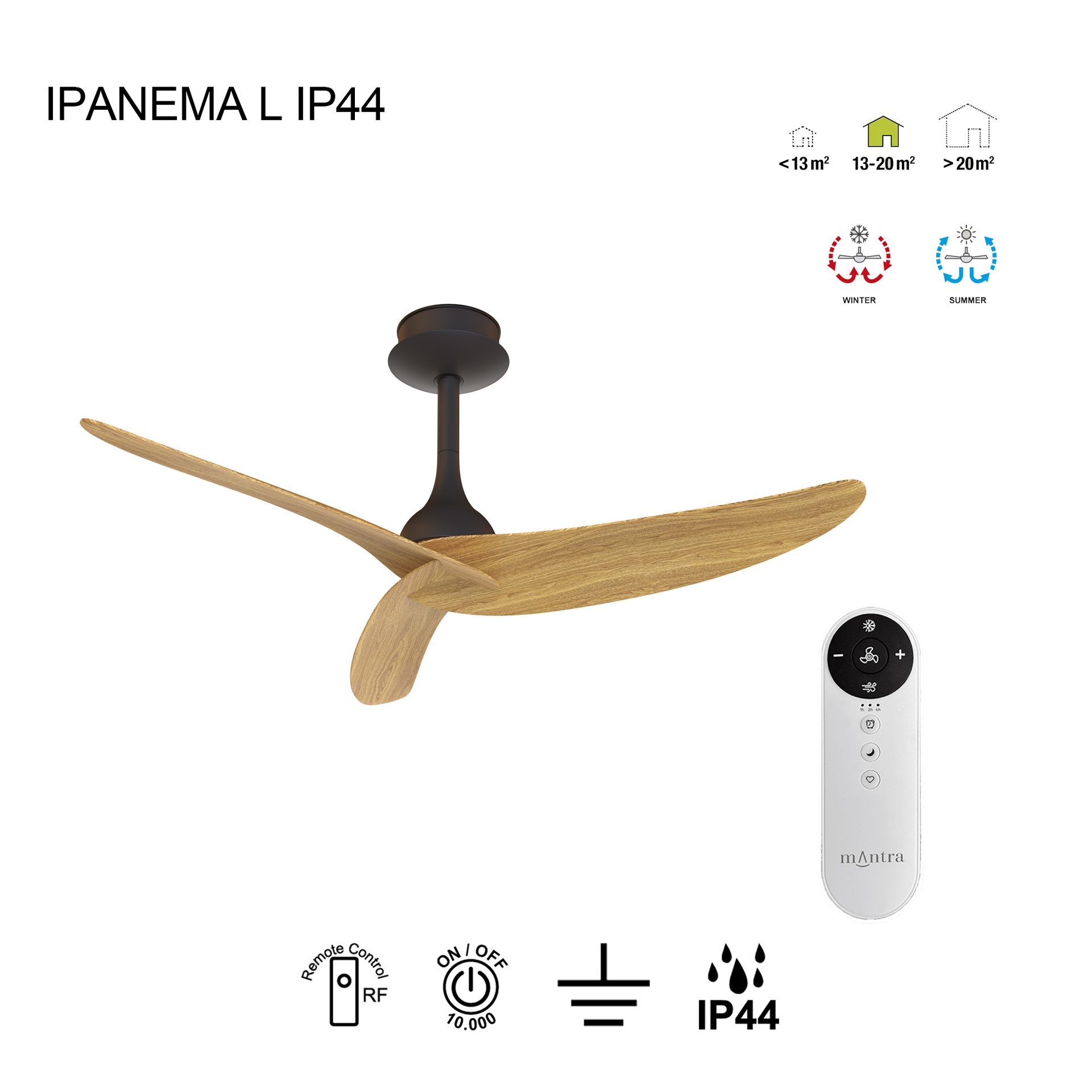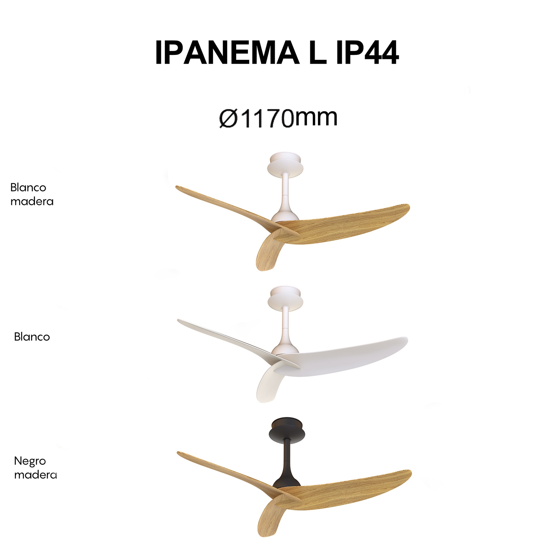 IPANEMA L IP44 * VENTILADOR3 ASPAS - SIN LUZ - NOIR-BOIS - IP44