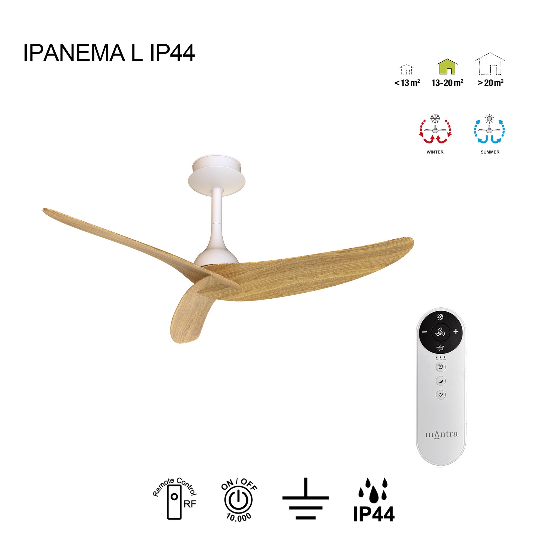 IPANEMA L * VENTILADOR3 ASPAS - SIN LUZ - BLANC-BOIS - IP44