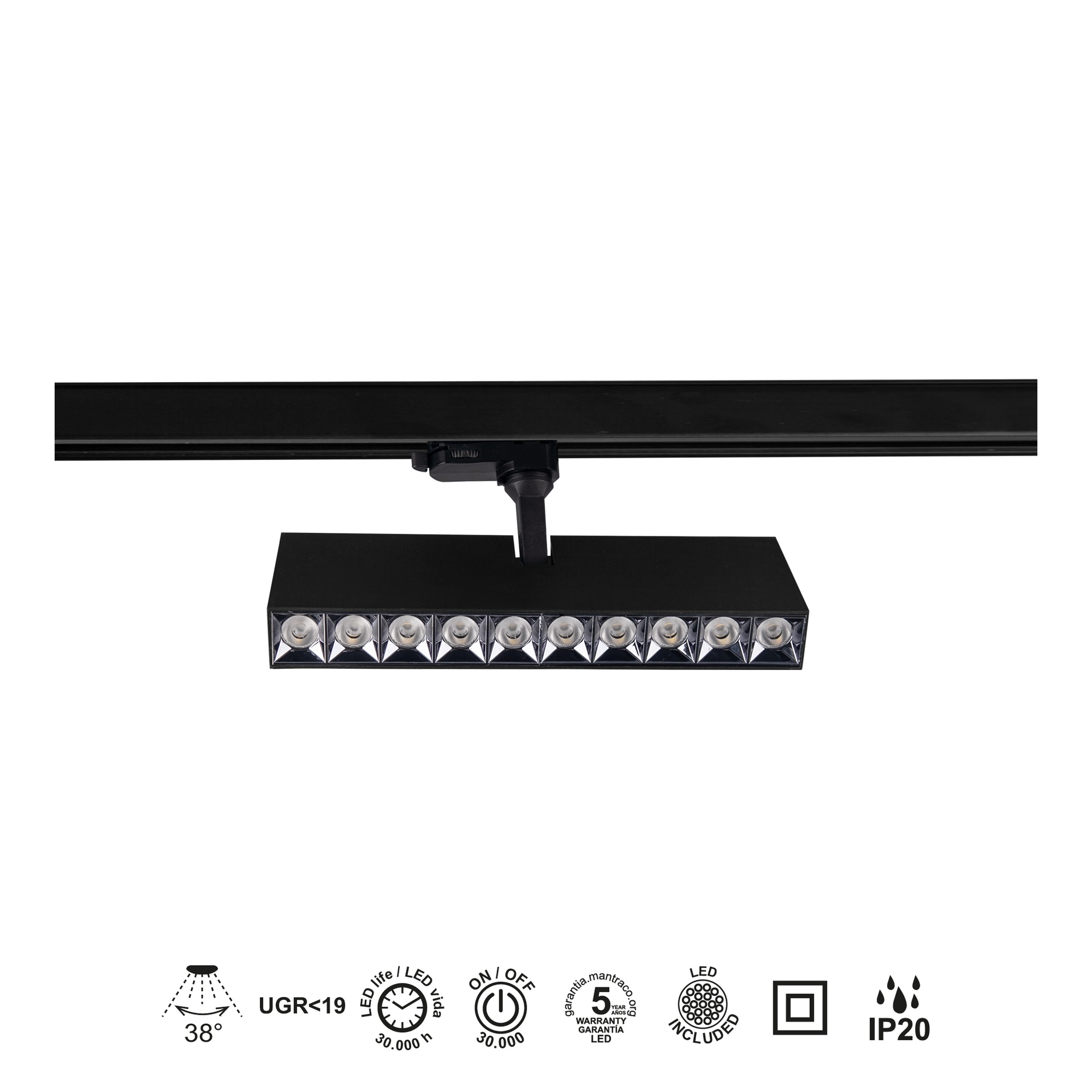 ITACA * PROJECTEUR SUR RAIL LINÉAIRE NOIR 30W 3000K