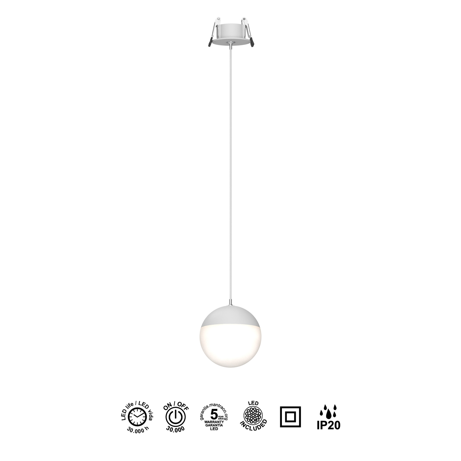 KILDA * LUMINAIRE SUSPENDU À LED BLANC ENCASTRÉ 10W 3000K