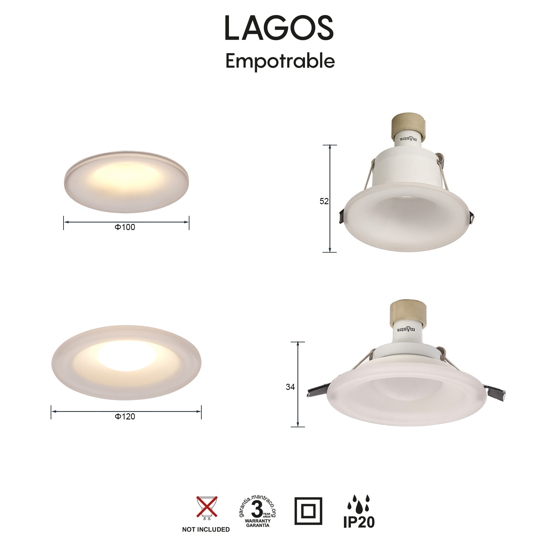 LAGOS * ENCASTRÉ GU10 COMFORT ROND BLANC