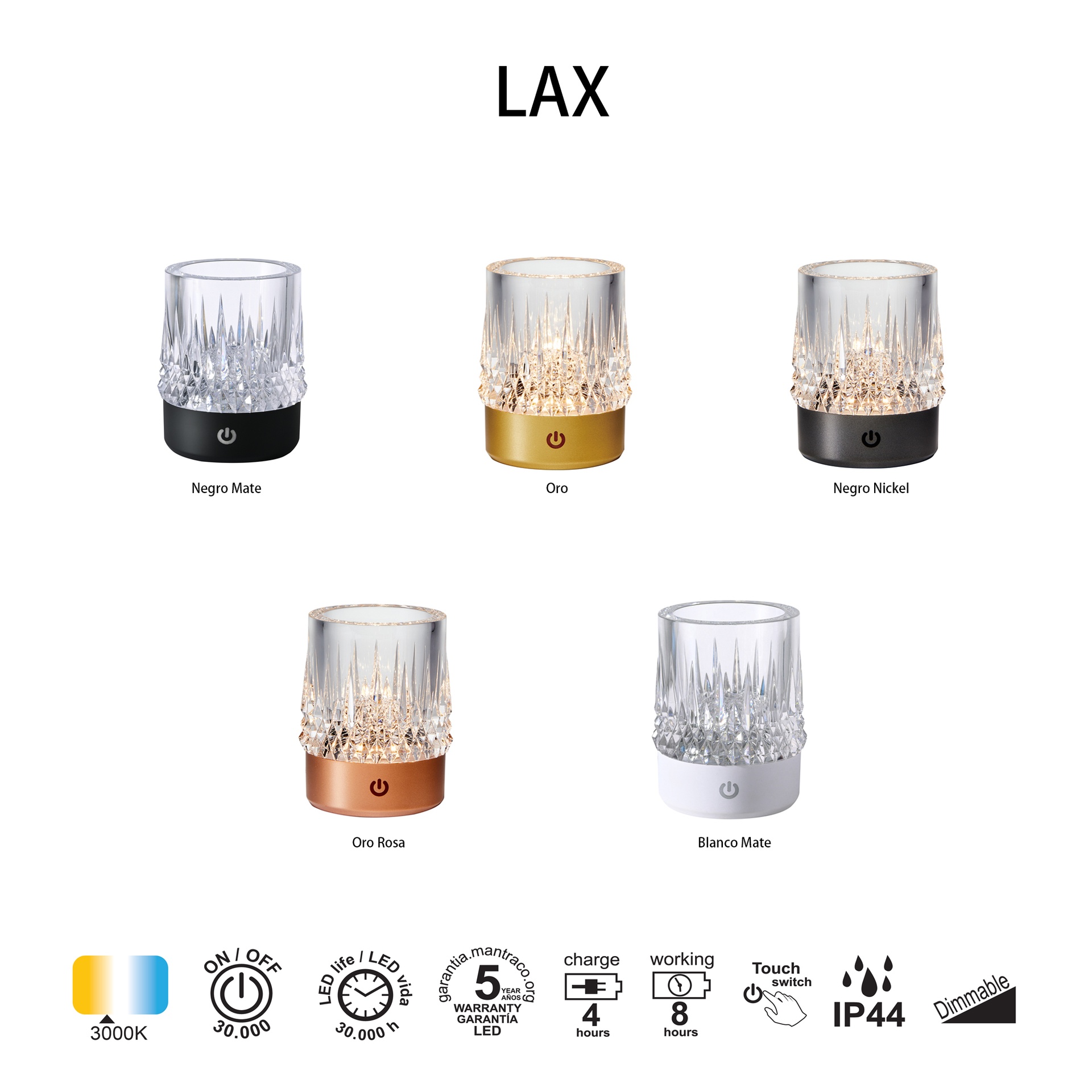 LAX propose une gamme d’éclairage d’extérieur polyvalente et contemporaine. Elle comprend des lampes de table d’extérieur, offrant des solutions adaptables à différents espaces. Fabriqués en ABS/PS, ces luminaires sont disponibles en blanc mat, noir mat ou or, alliant robustesse et style pour chaque application. Ils intègrent la technologie LED avec des températures de couleur de 3000 K, garantissant confort et efficacité énergétique. Cette gamme a été créée pour répondre aux besoins des environnements décoratifs comme des projets d’éclairage exigeants.