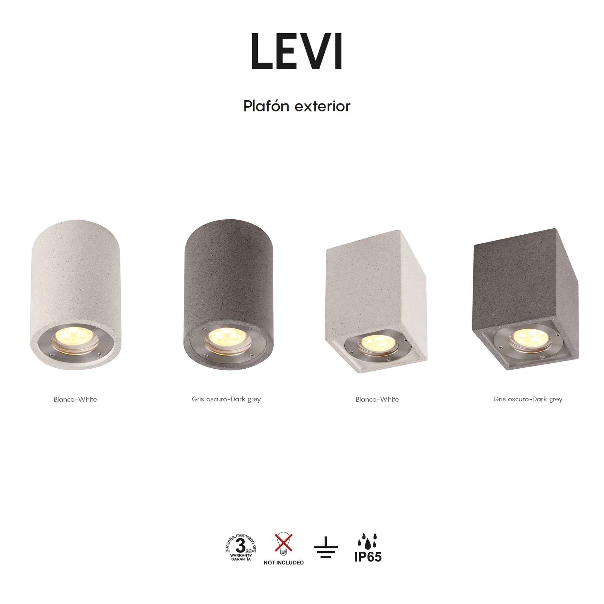 Le design LEVI, fruit de l’équipe MANTRA, allie créativité et précision pour les applications extérieures. La gamme comprend des appliques et des plafonniers d’extérieur, offrant des solutions adaptables à différents espaces. Fabriqués en béton, plâtre/béton, les luminaires sont disponibles en blanc ou gris foncé, offrant robustesse et style pour chaque application. Certifiés IP65, ils sont adaptés à une utilisation en extérieur et garantissent des performances stables même dans des conditions difficiles. LEVI est synonyme de design soigné et d’efficacité lumineuse pour tous types d’espaces.