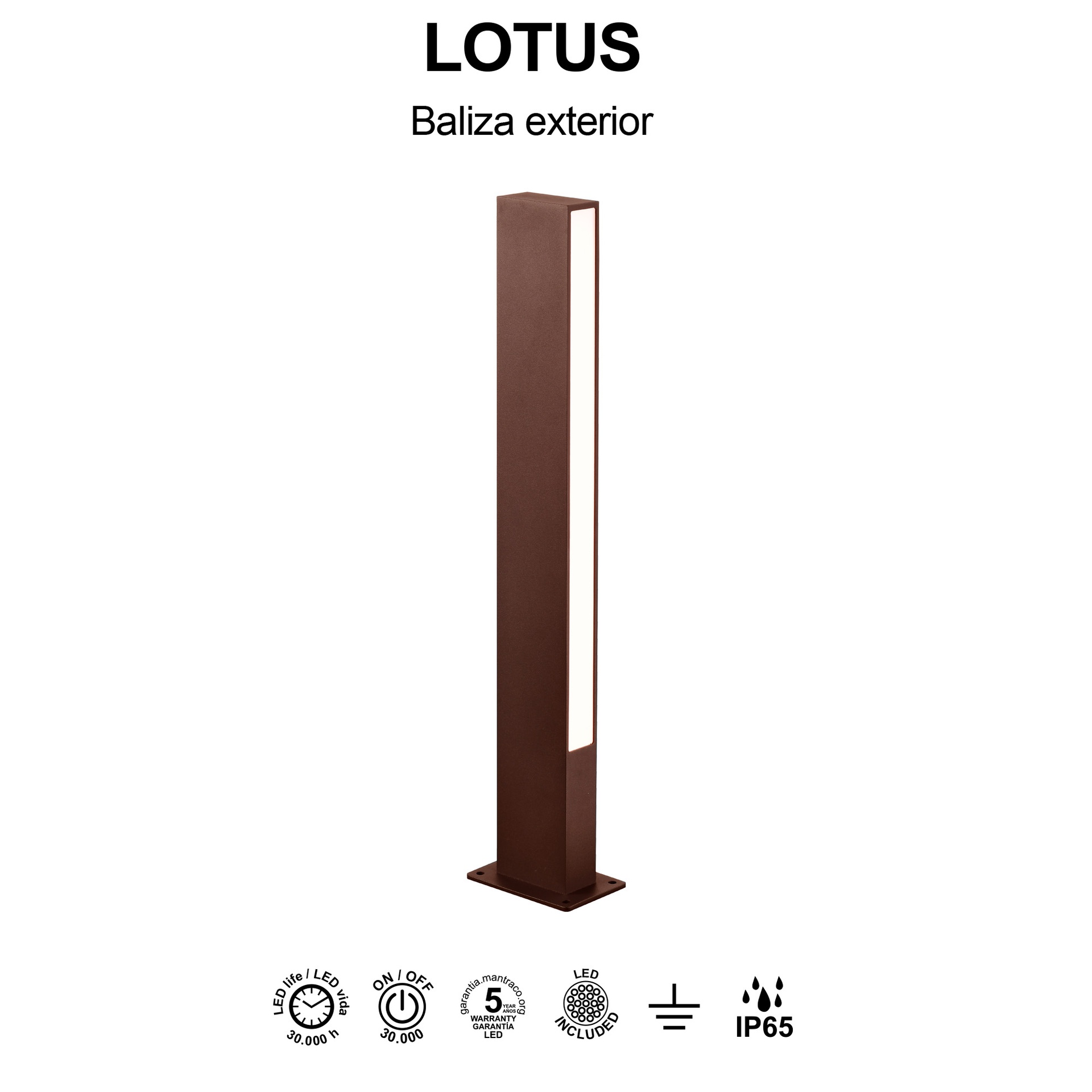LOTUS * BOLLARD 60CM IP65 10W 3000K CORTEN
