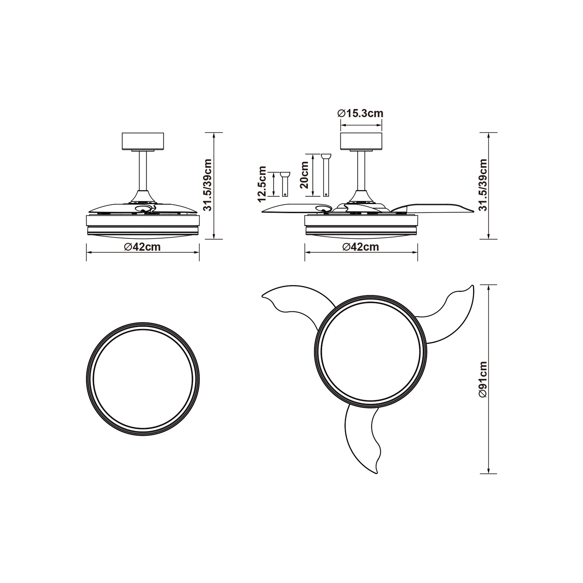 LUNA S * FAN SMALL LED - BLANC