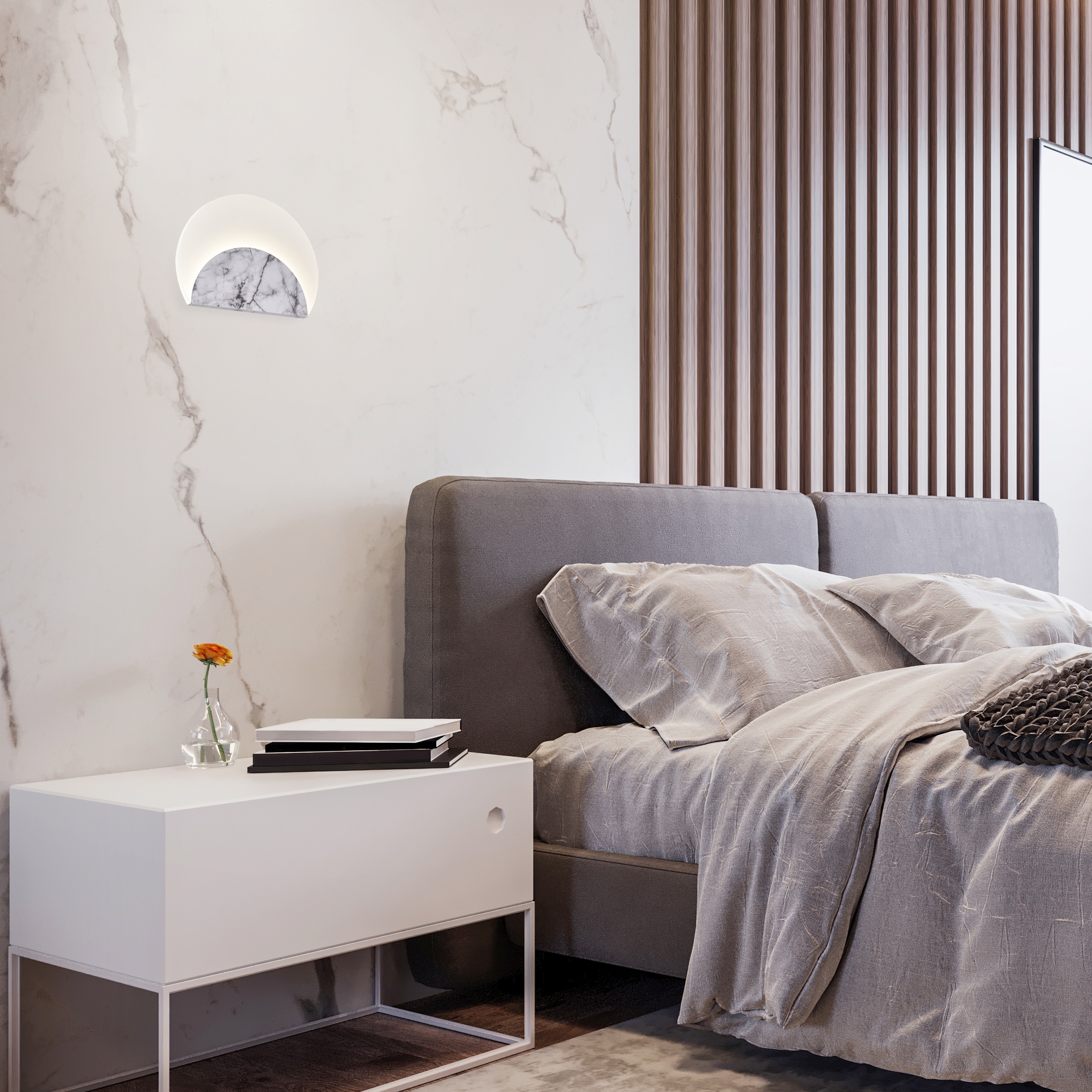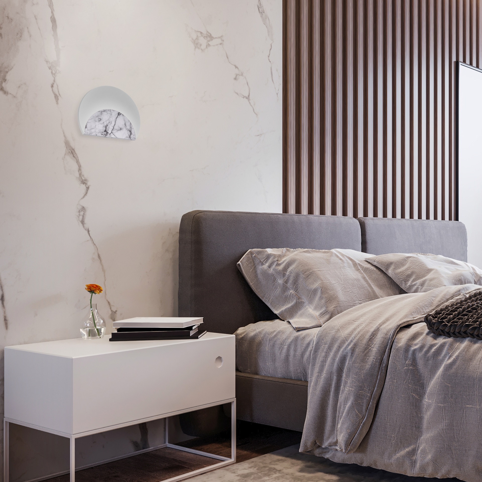***DES*** MARBRE * APPLIQUE LED 12W - 3000K - MARBRE BLANC + VERRE OPALE